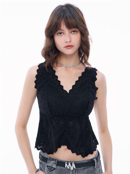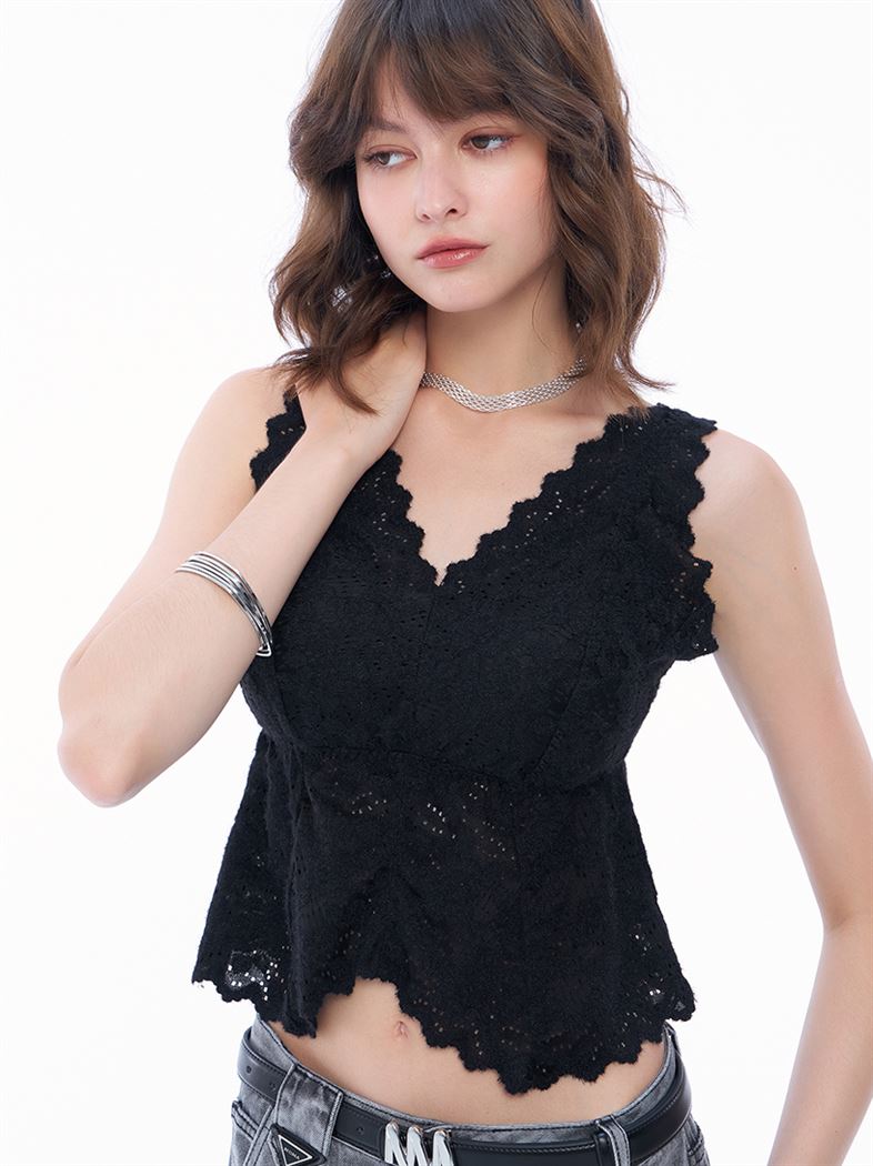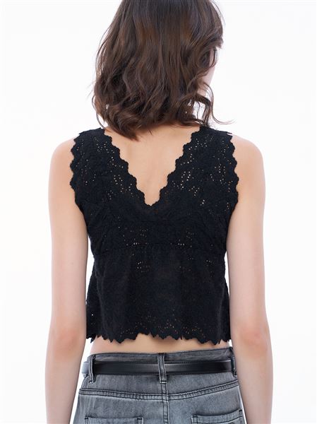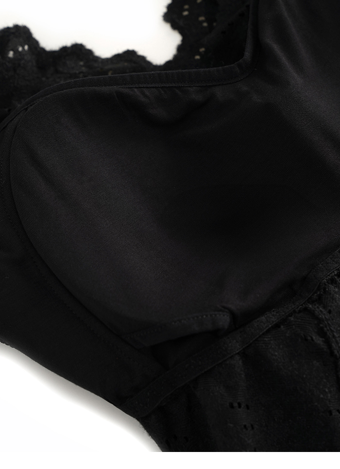 推薦同款米白色穿搭 浪漫柔美花邊鏤空蕾絲Bra Top-杏 請點我