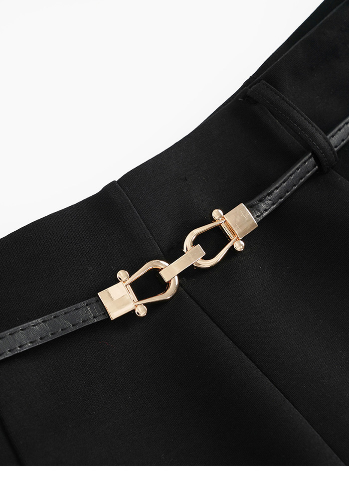 - 附可拆式金屬鈎釦皮腰帶,可自由調整身型線條