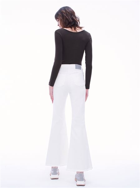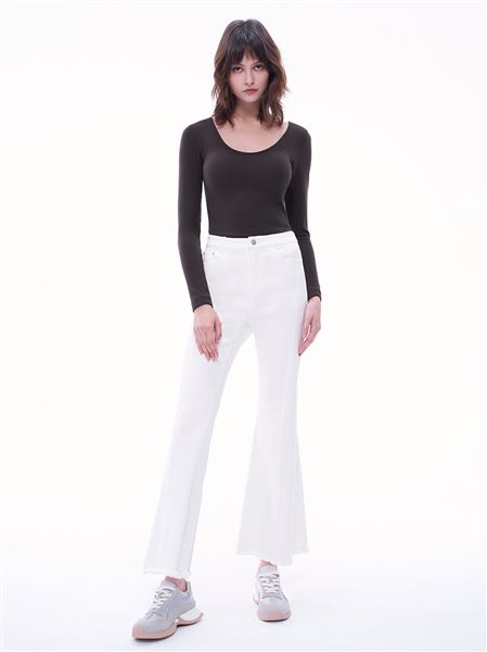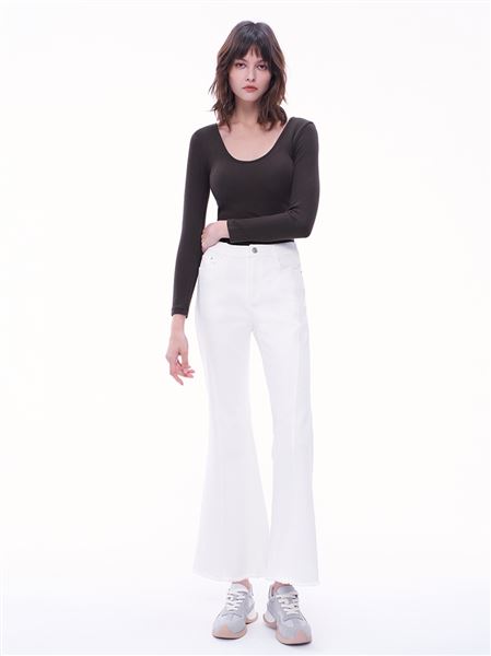 - 喇叭褲版型與褲管毛邊設計,流行時尚