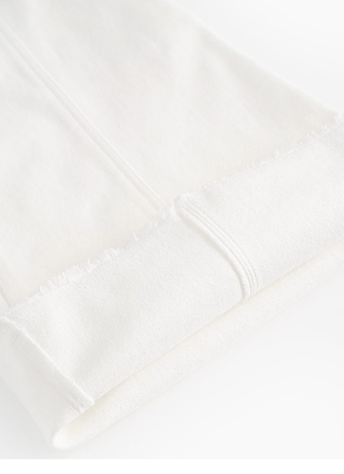 - 前片褲身斜立體壓線向內收攏,修飾腿型