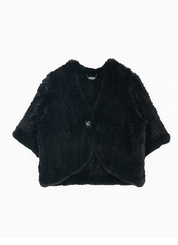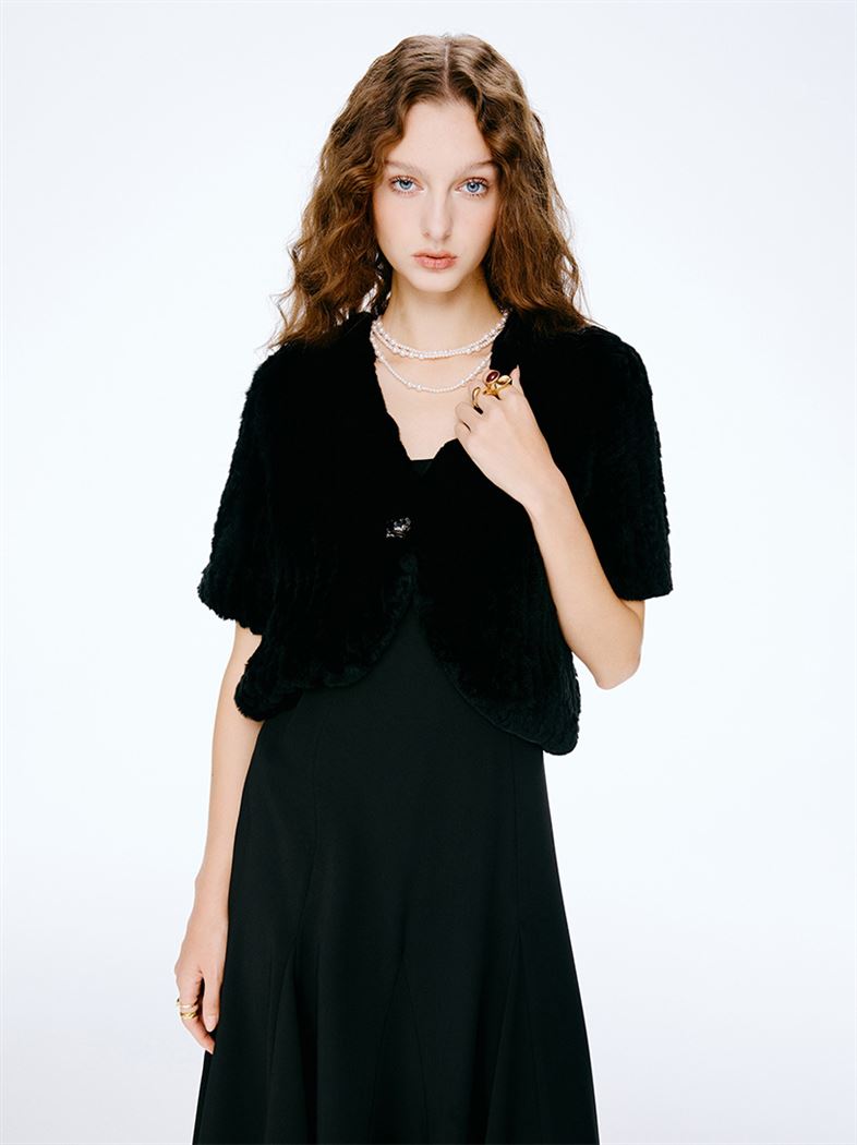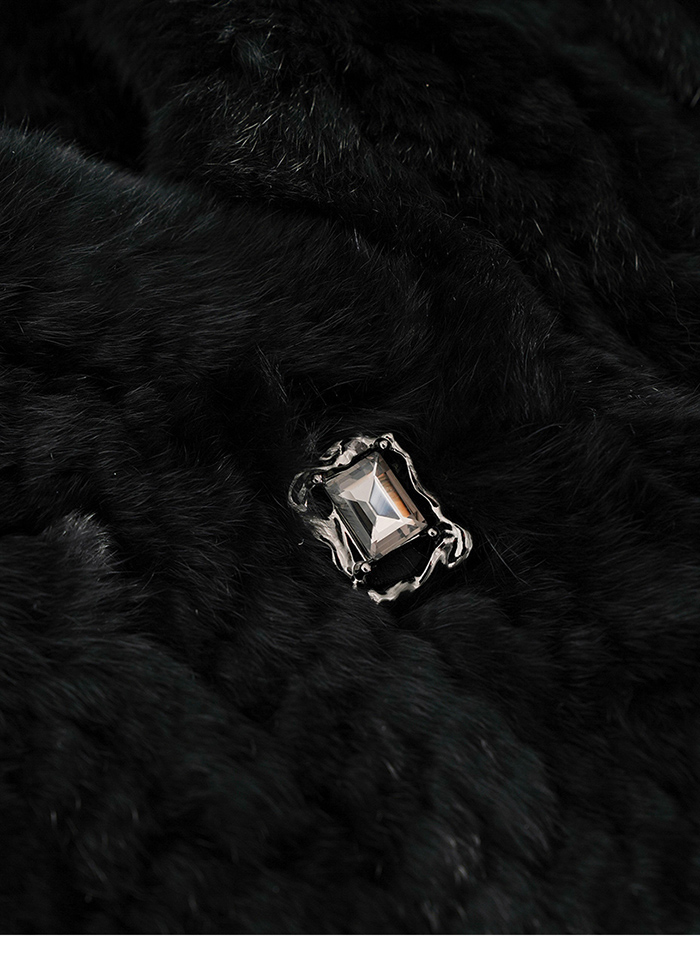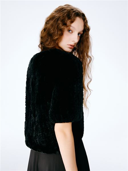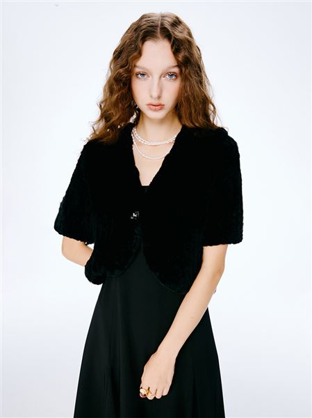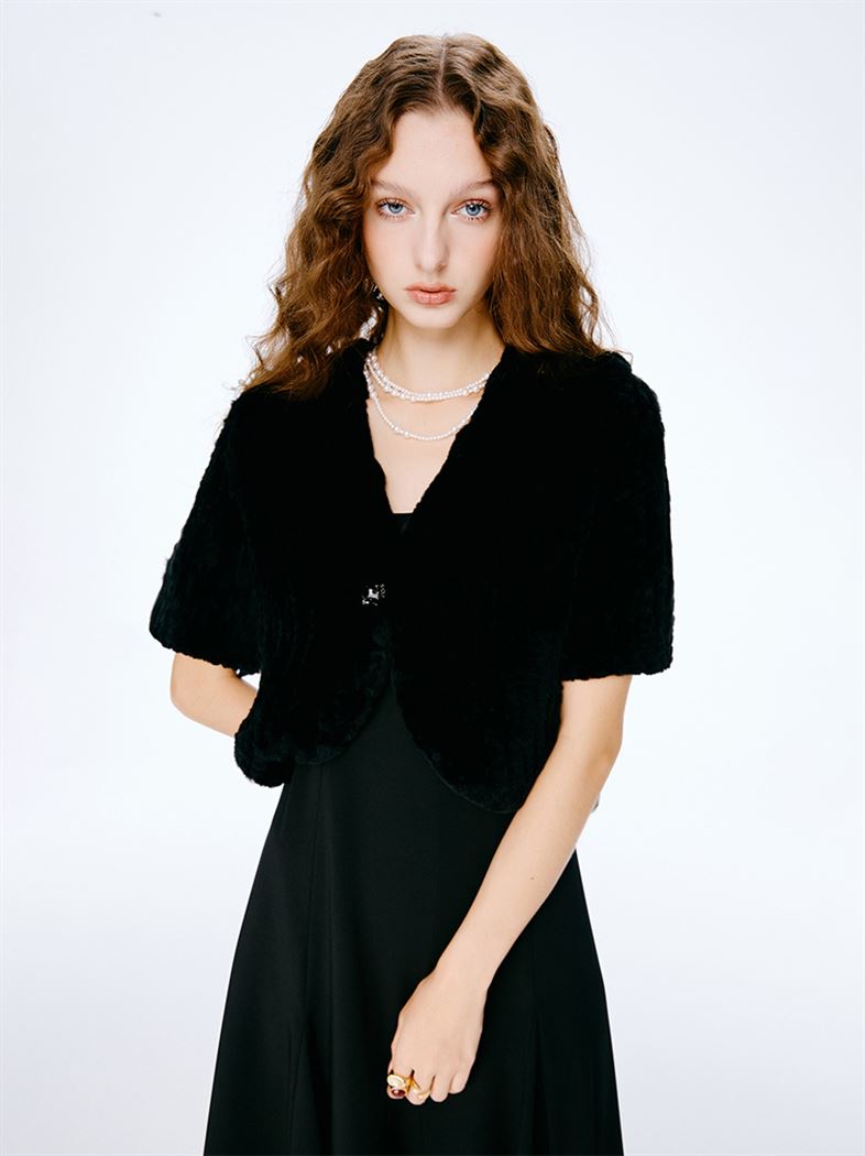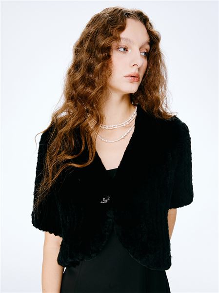 精緻貴婦獺兔毛方鑽短版外套-黑