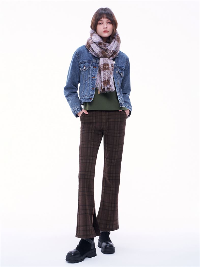 推薦成套穿搭 復古格紋內磨毛喇叭褲 請點我