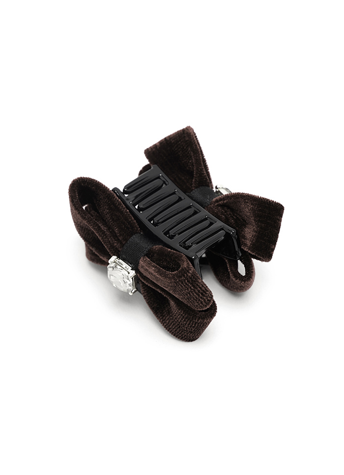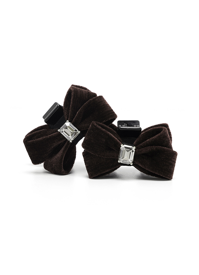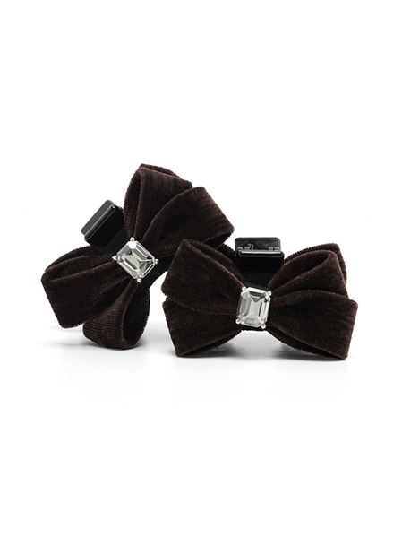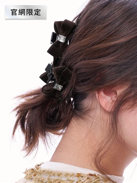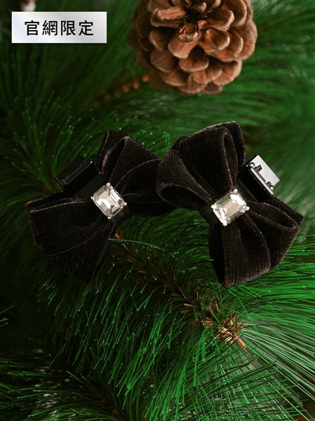 推薦同款暗紅色配件 韓系絨布蝴蝶結方鑽髮夾 | 官網限定 請點我