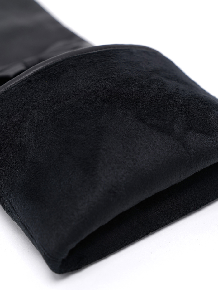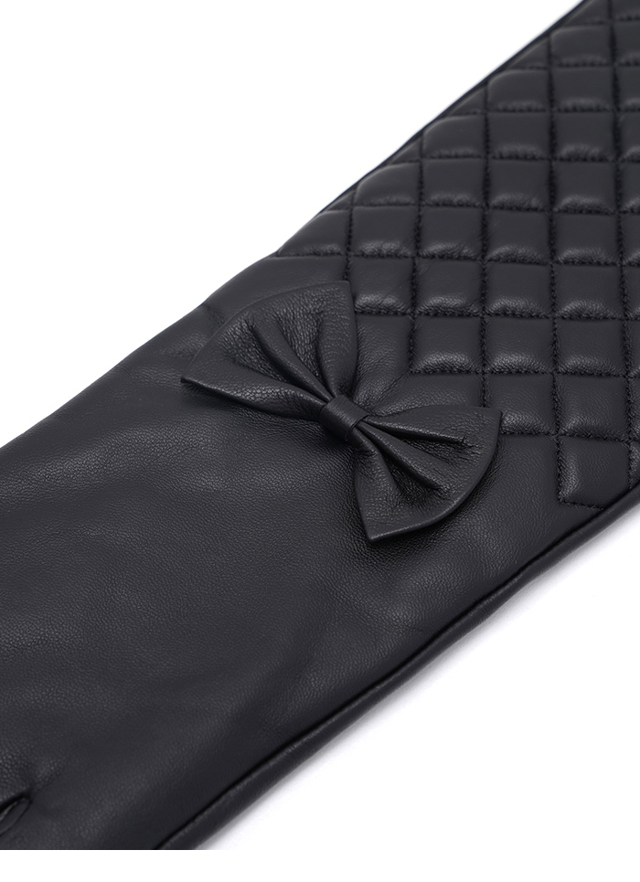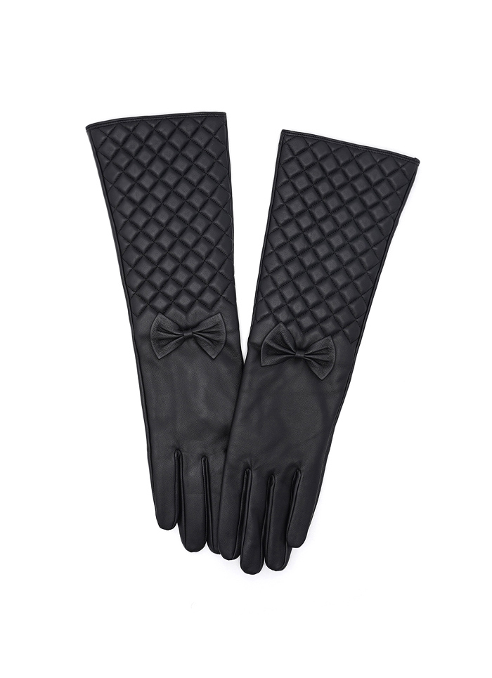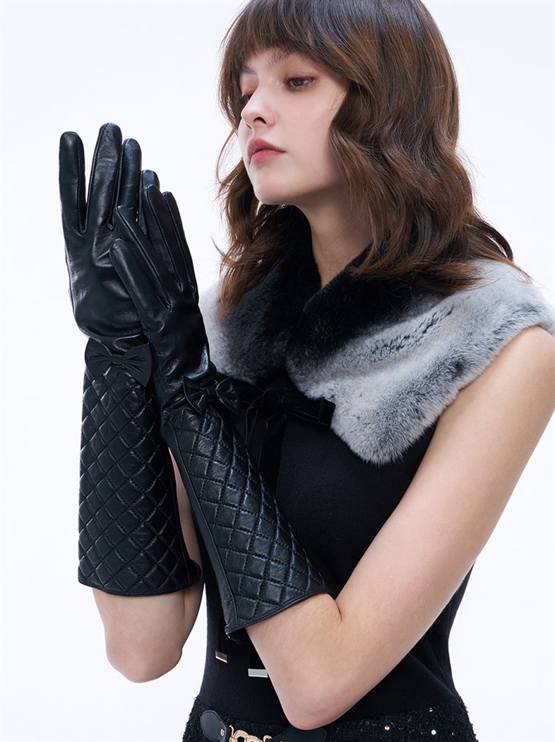 推薦同款暗紅色穿搭 蝴蝶結菱格紋羊皮內刷毛長版手套-暗紅 請點我