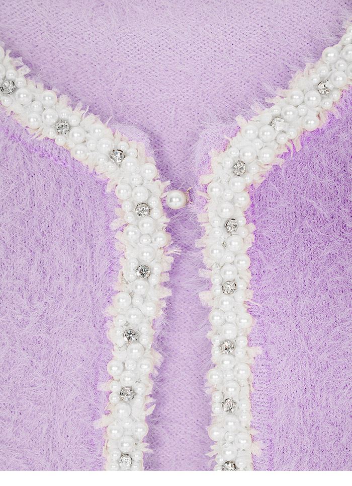 推薦同款暗紅色穿搭 精豔小香貂毛珍珠閃鑽外套-暗紅 請點我