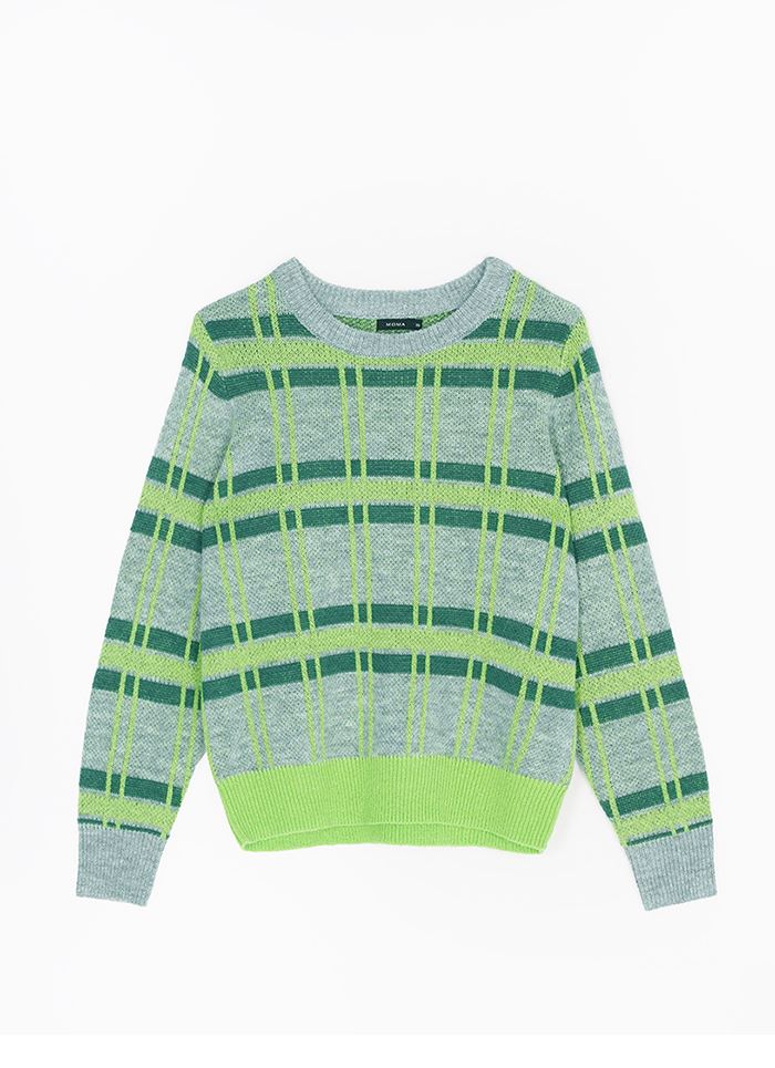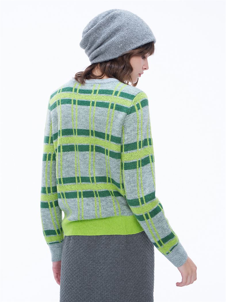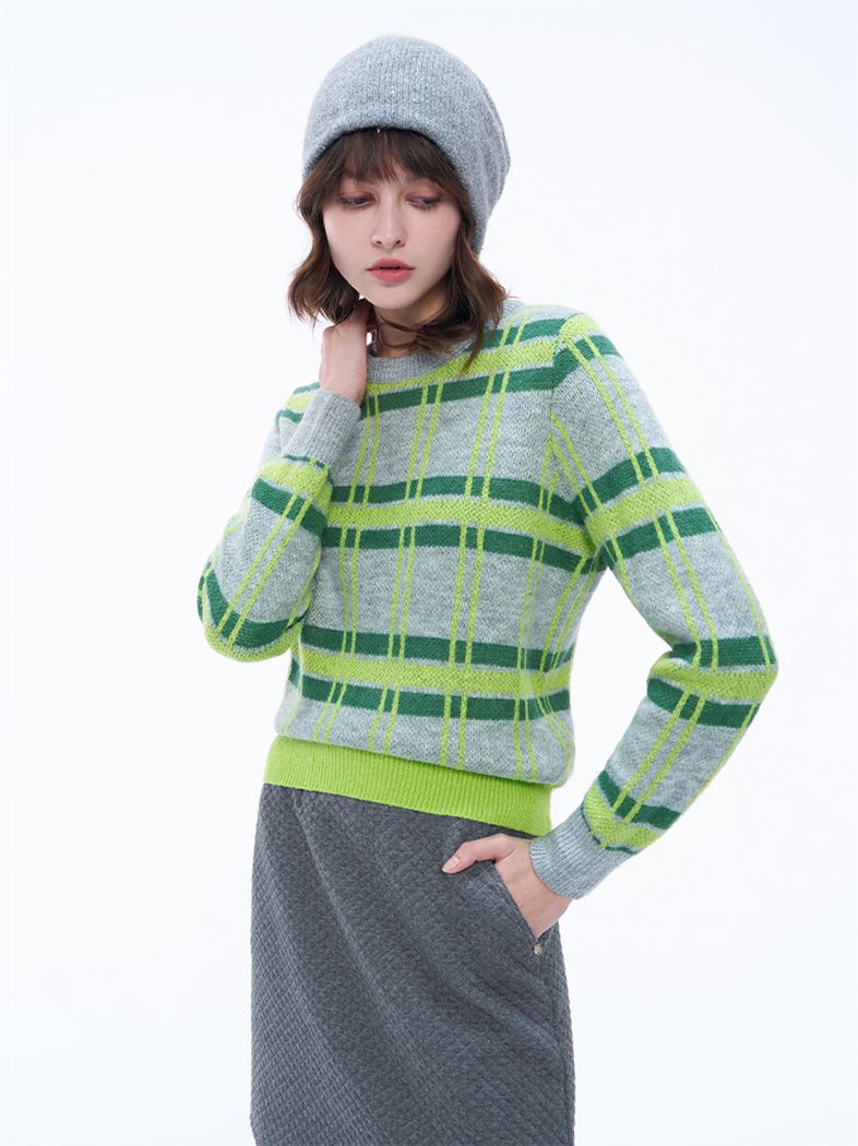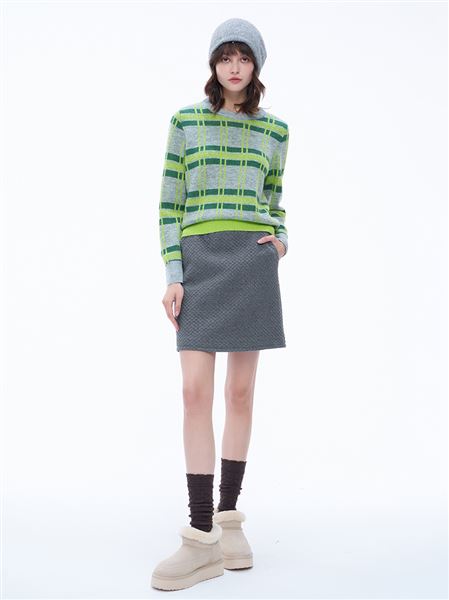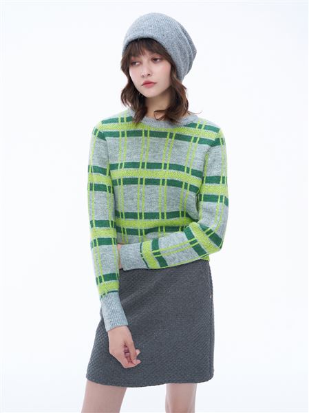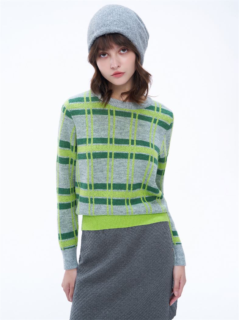 推薦同款粉色穿搭 跳脫方格條紋羊毛針織上衣-桃 請點我