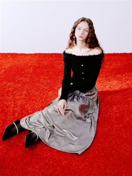 推薦穿搭 派對小辣椒羽毛紗船領針織上衣-黑 請點我