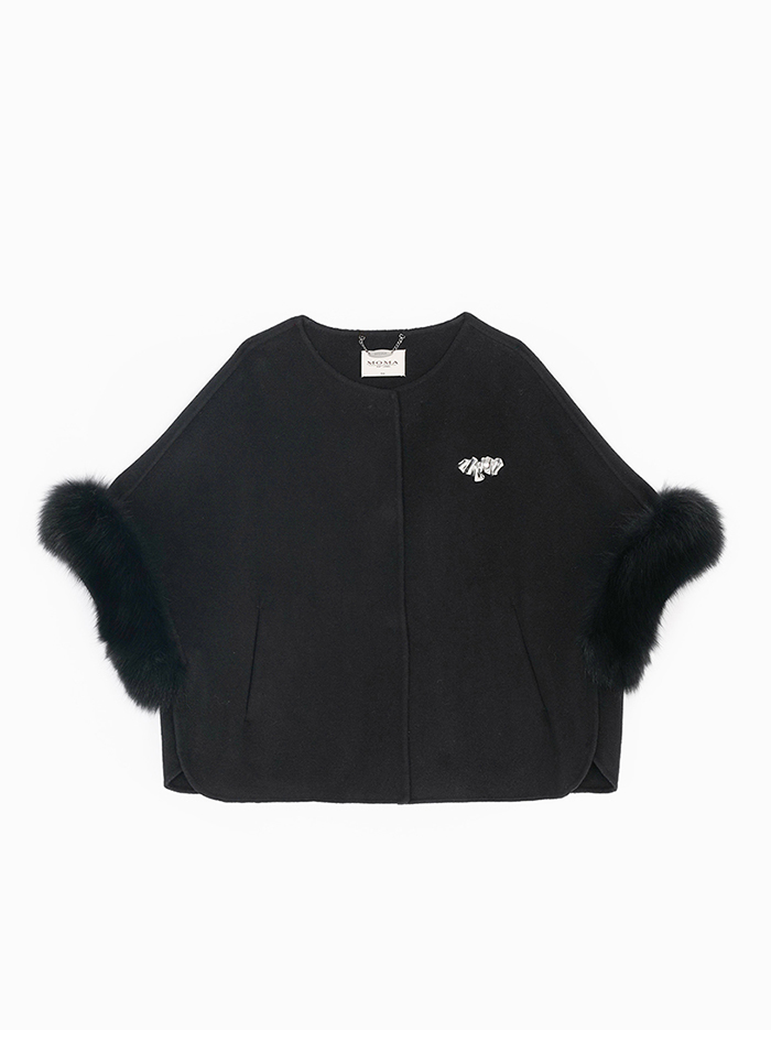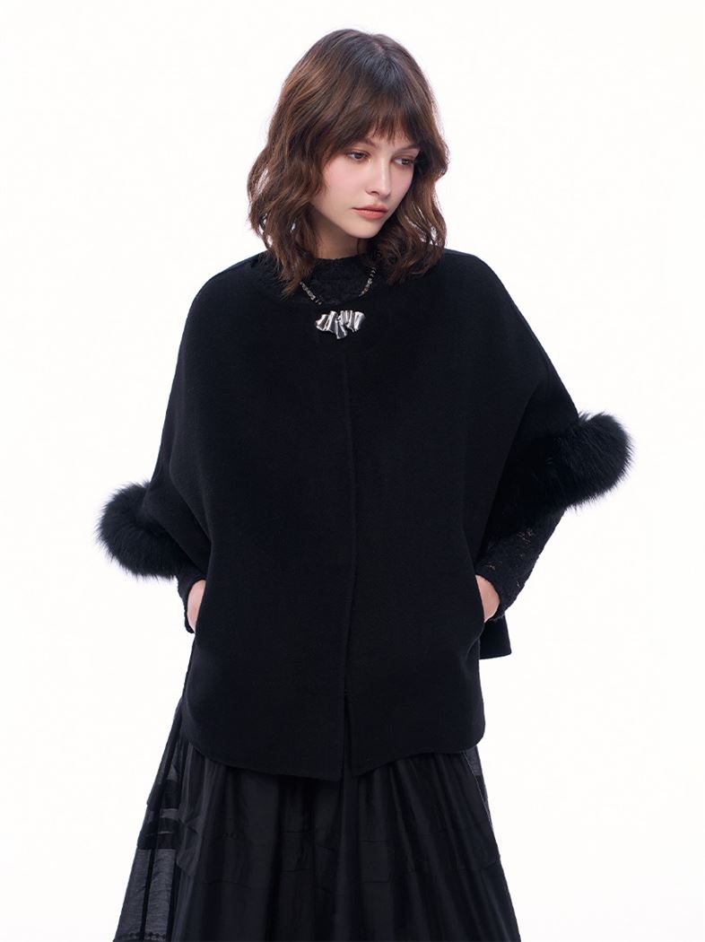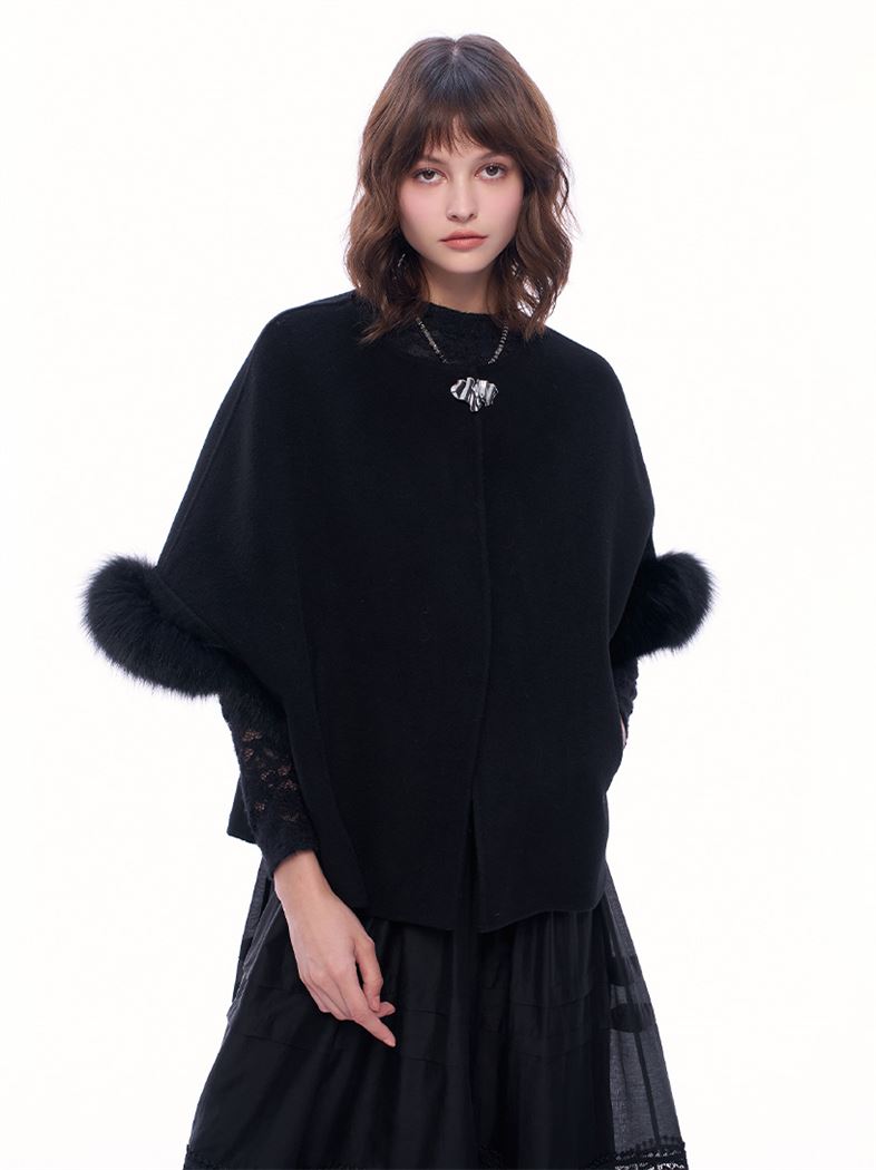 推薦同款黃色穿搭 M+ | 奢華雙面毛呢綿羊毛繭型斗篷-黃 請點我
