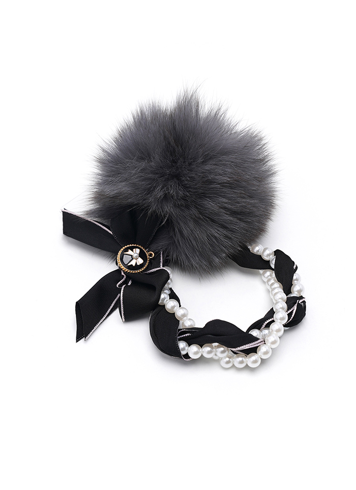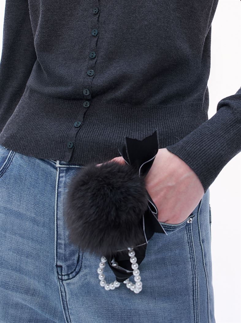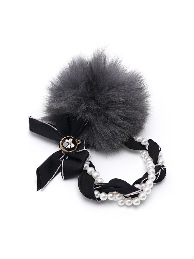 推薦同款米白色穿搭 毛球珍珠緞帶吊飾-米白| 官網限定 請點我