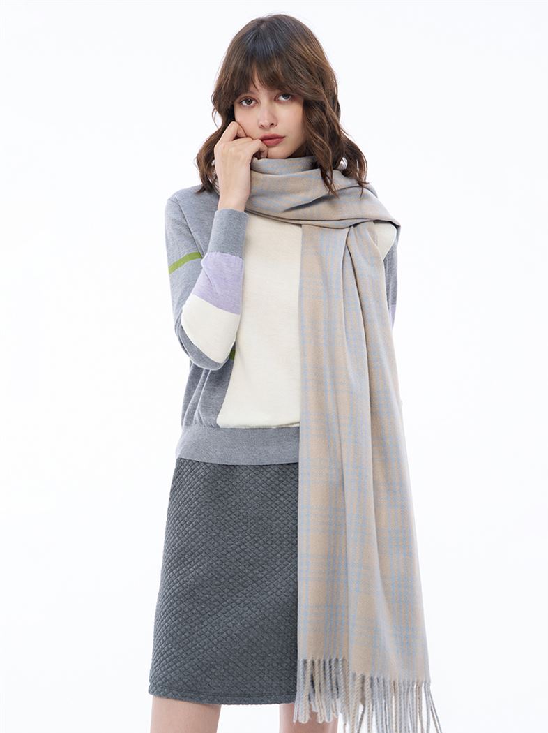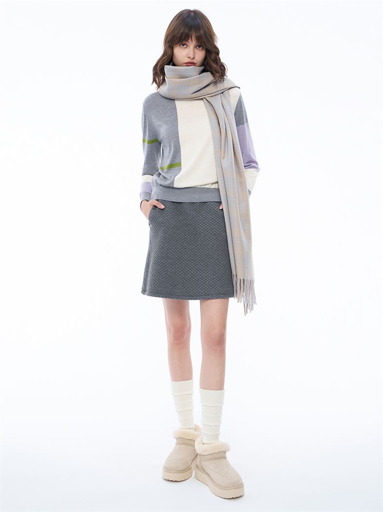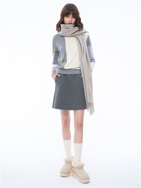 推薦穿搭 幾何跳色碰撞羊毛針織高領上衣-淺紫 請點我