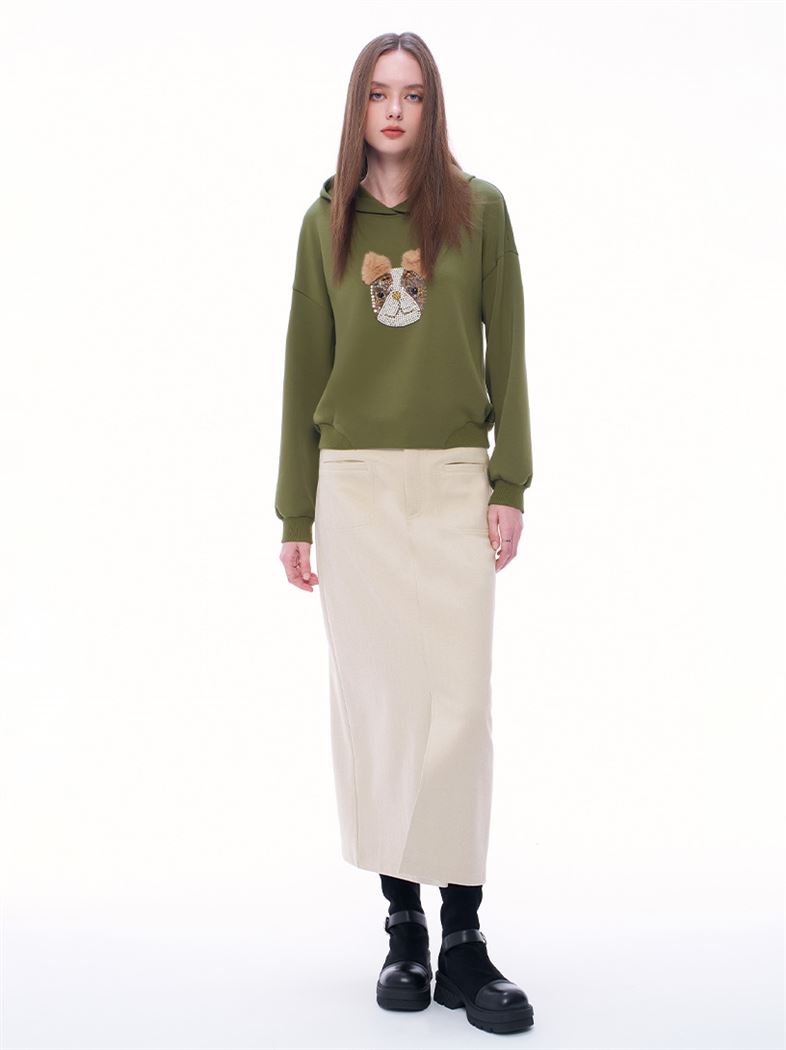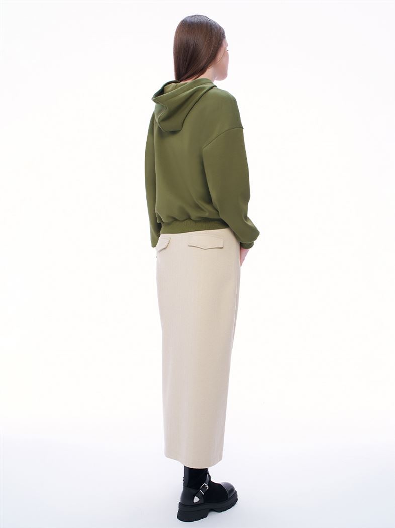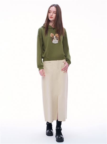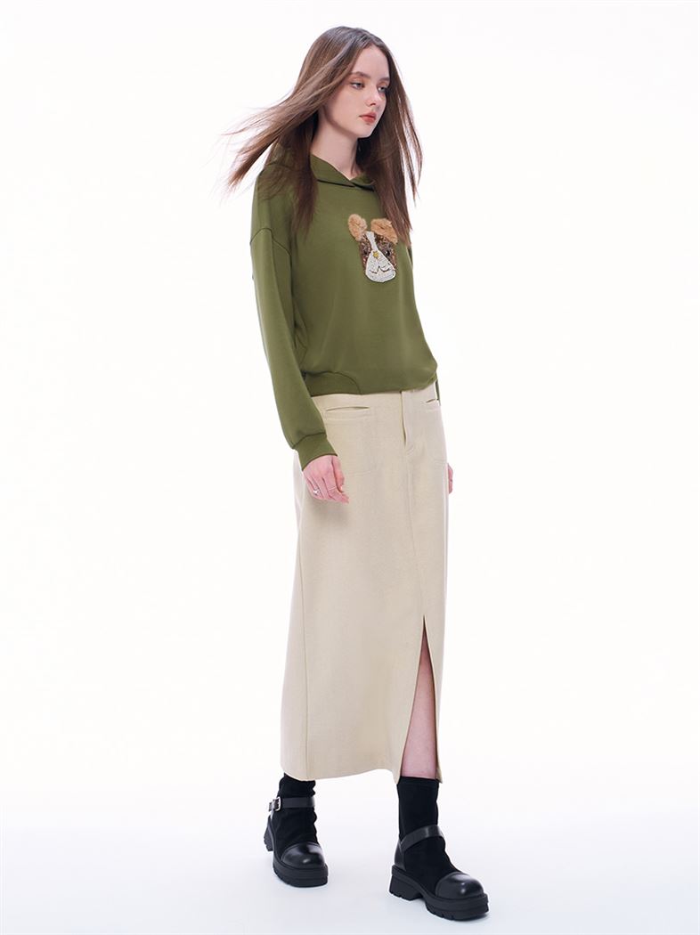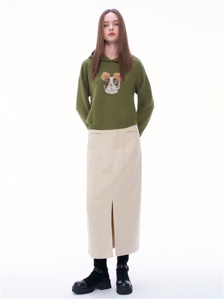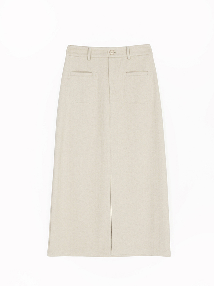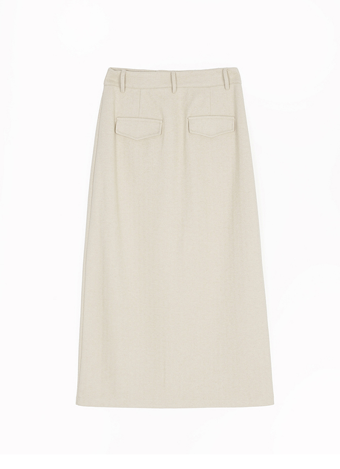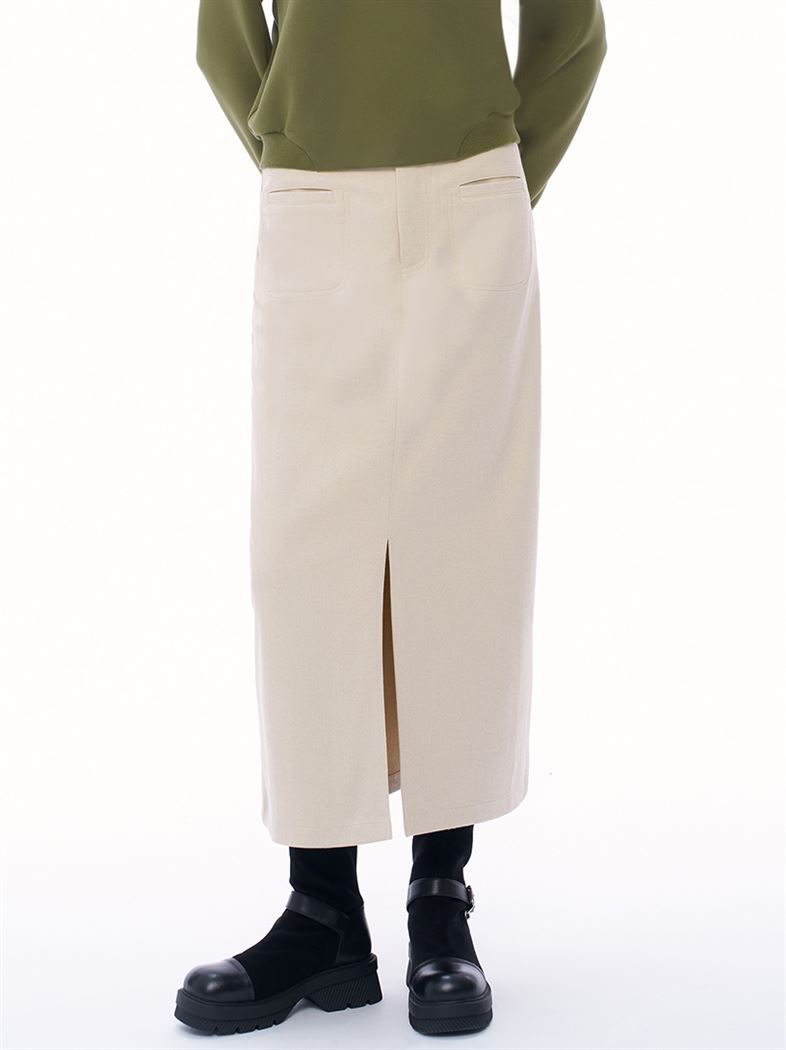 優雅格調人字紋開衩磨毛鉛筆裙-卡其