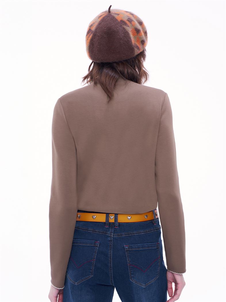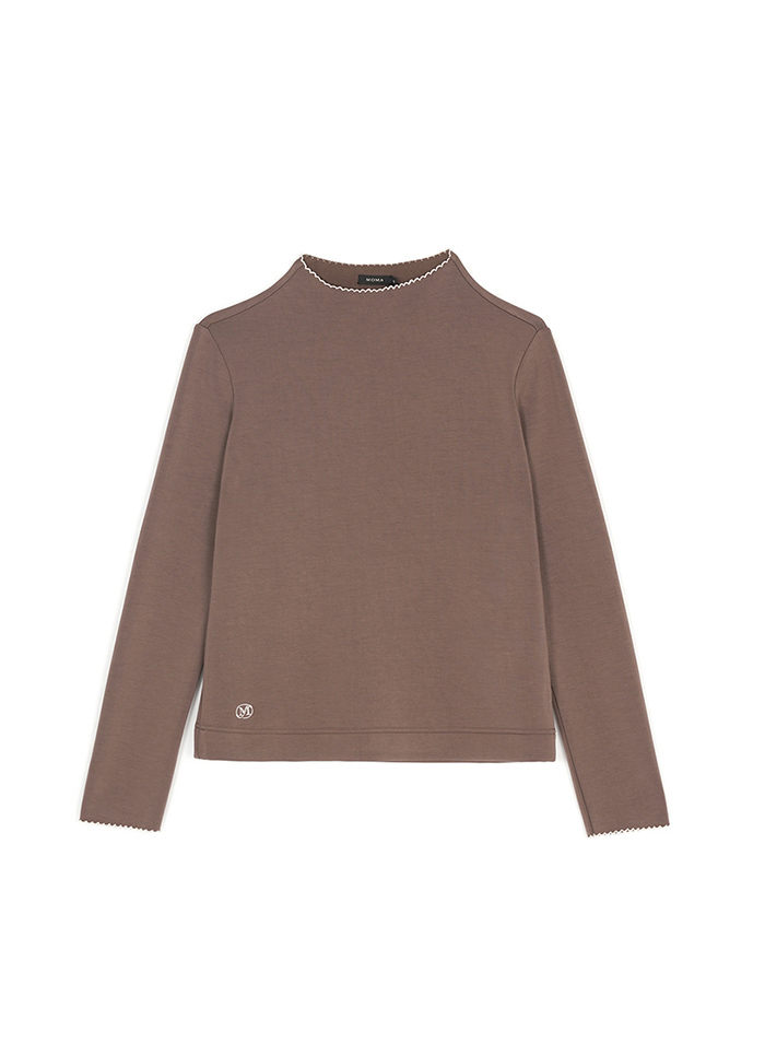 推薦同款米白色穿搭 花邊M字刺繡太空棉內刷絨上衣-米白 請點我