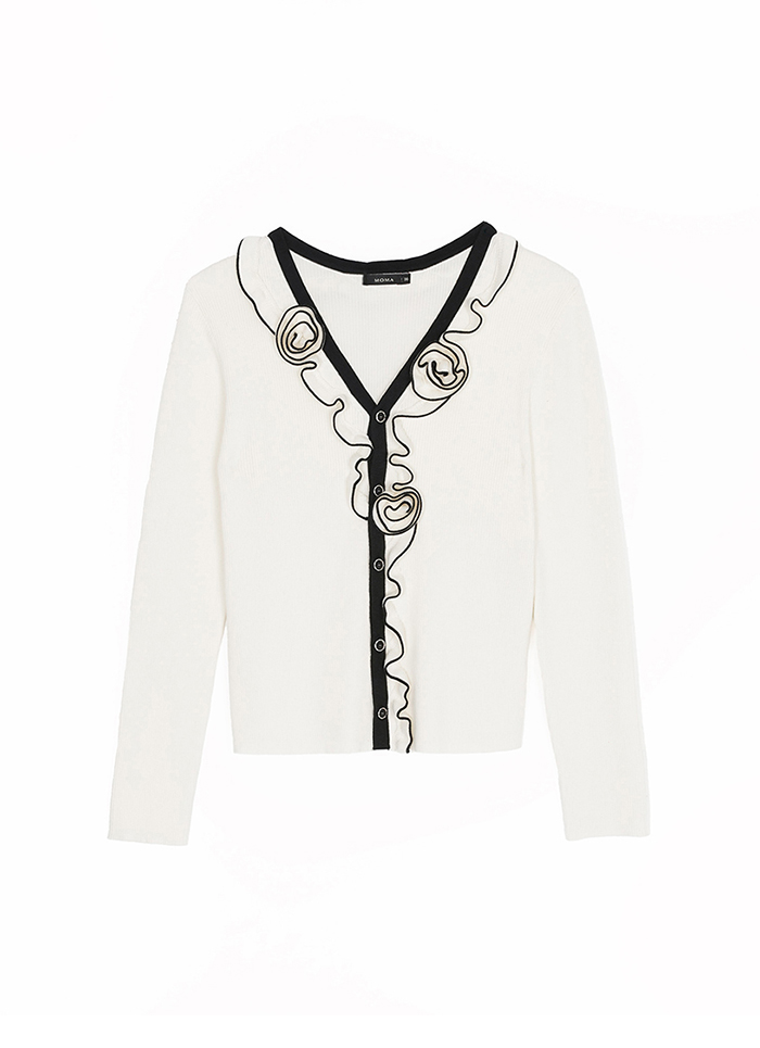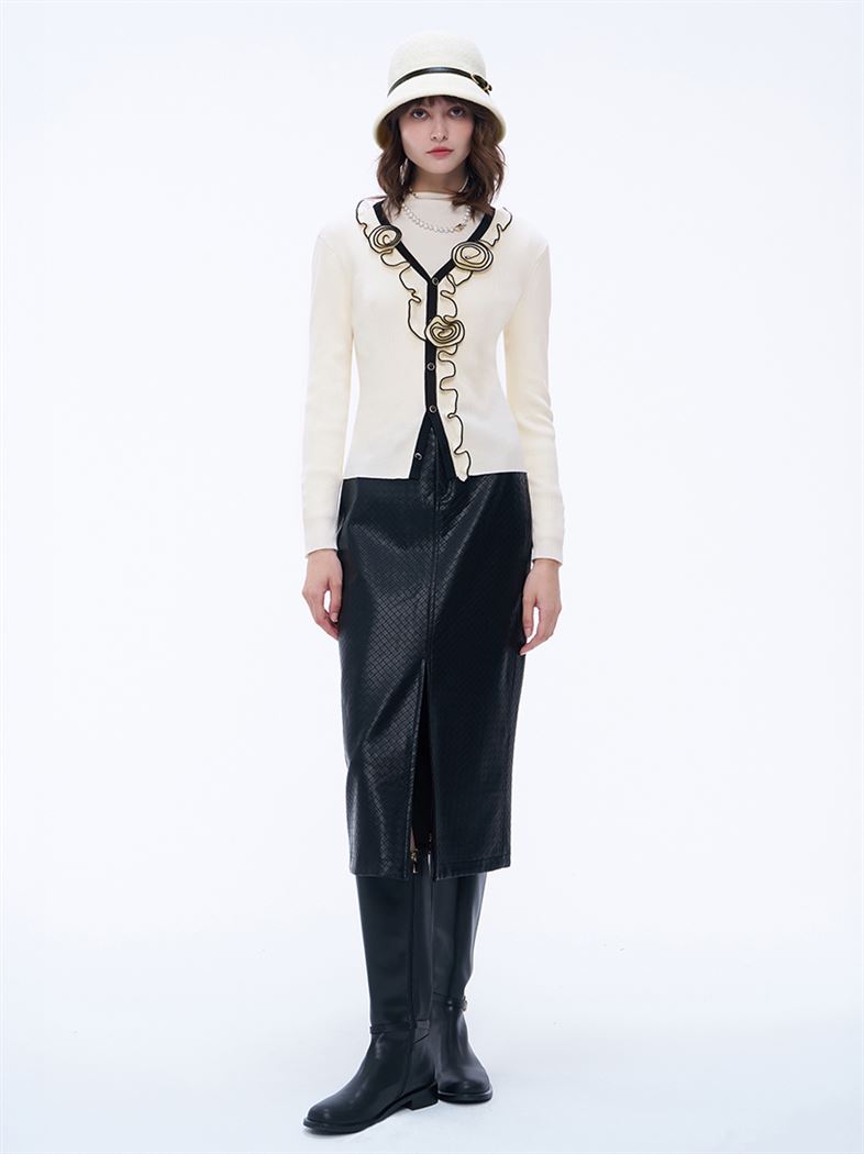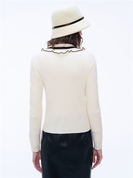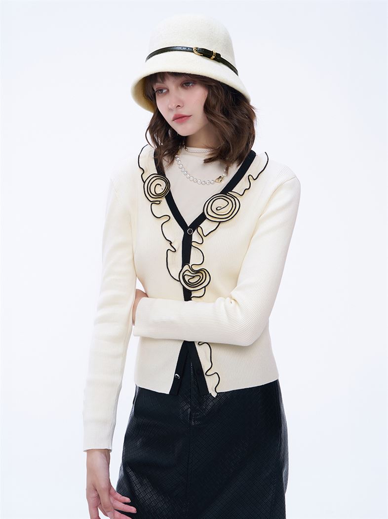 推薦同款紅色穿搭 玫瑰花園荷葉邊羊毛針織外套-紅 請點我