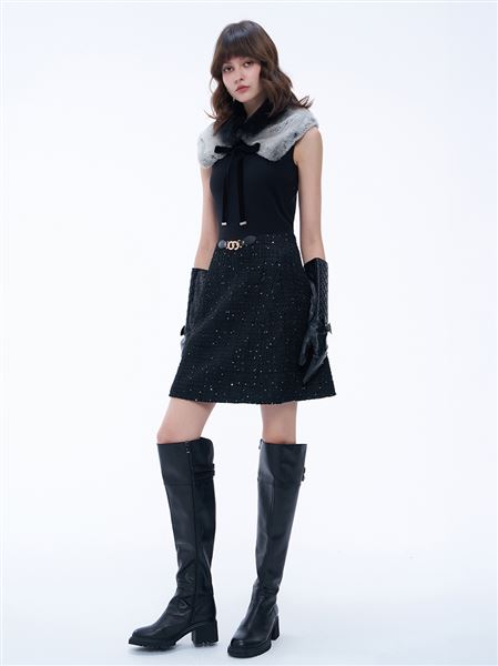 推薦穿搭 黯魅小香亮片包芯紗傘狀短洋裝 請點我