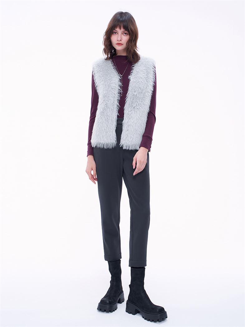 推薦同款卡其色穿搭 蓬鬆毛絨感仿貂毛背心-卡其 請點我