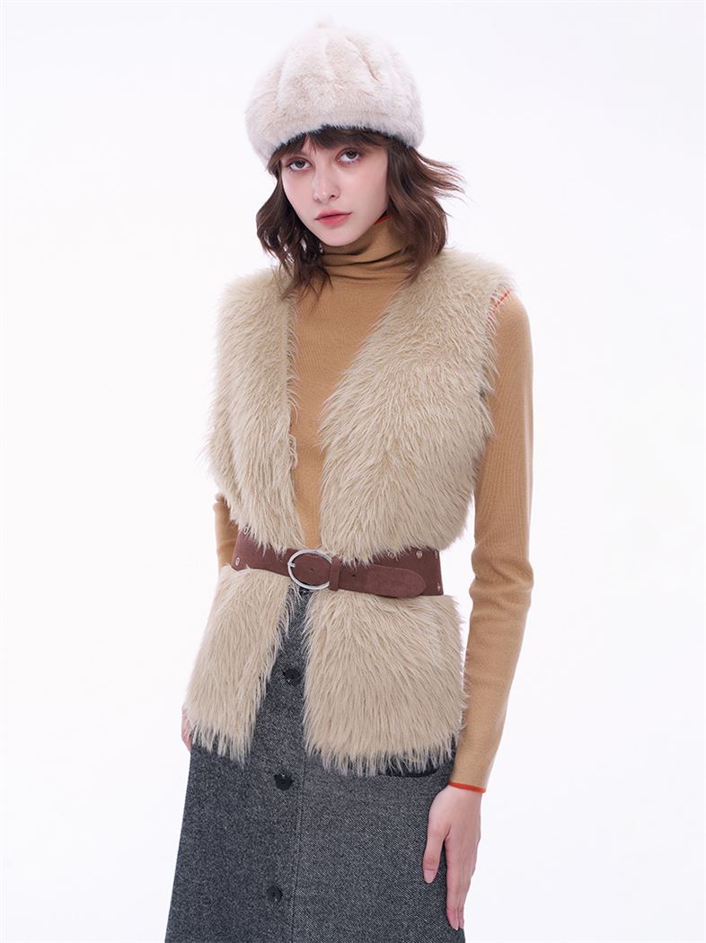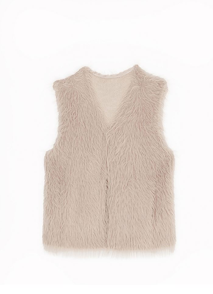 推薦穿搭 蓬鬆毛絨感仿貂毛背心-卡其 請點我