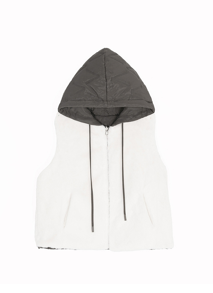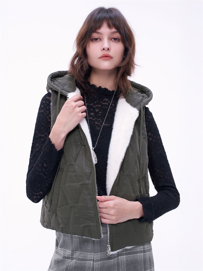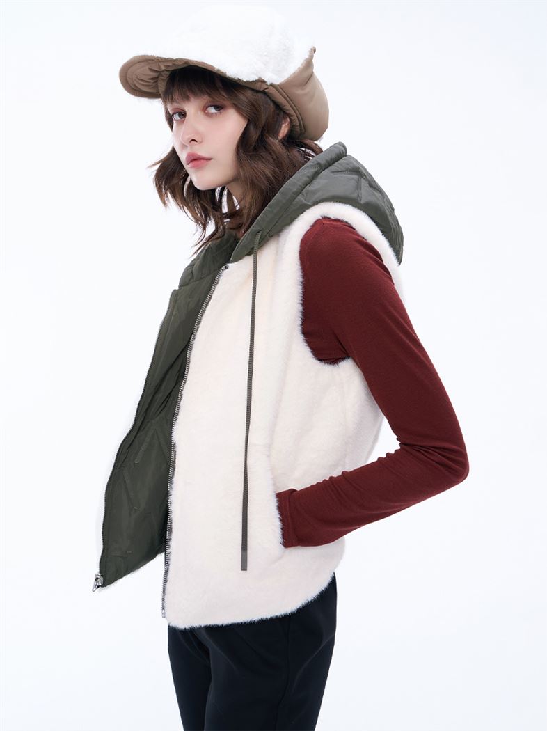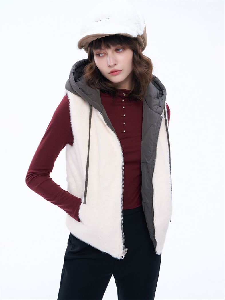 推薦同款米白色穿搭 隨心切換鋪棉仿兔毛雙面穿背心-米白 請點我