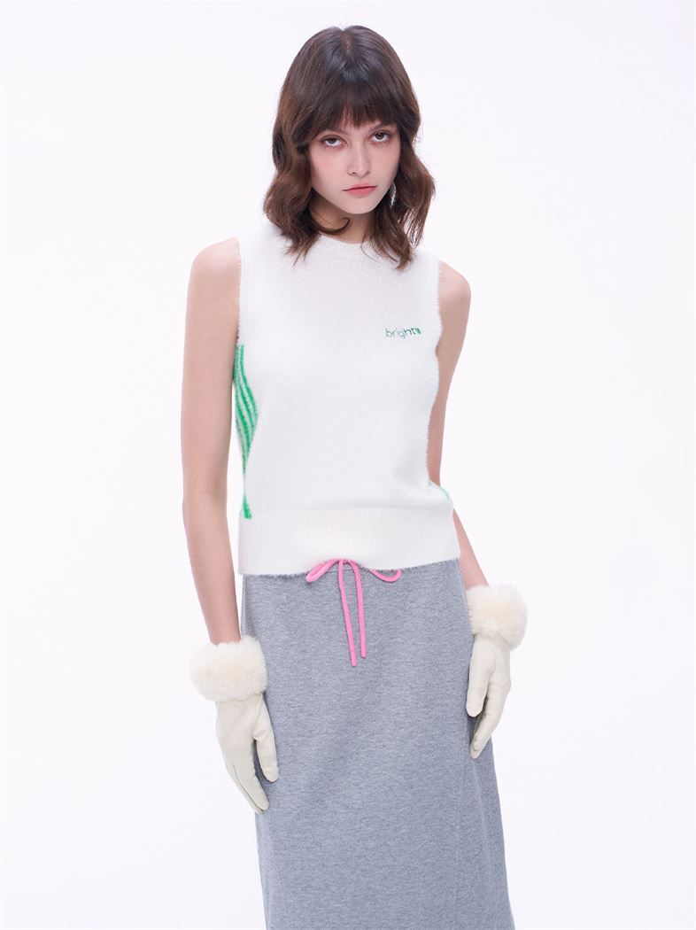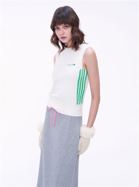 推薦成套穿搭 鹽甜兼具運動風仿貂毛針織外套-白 請點我