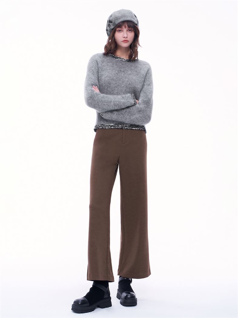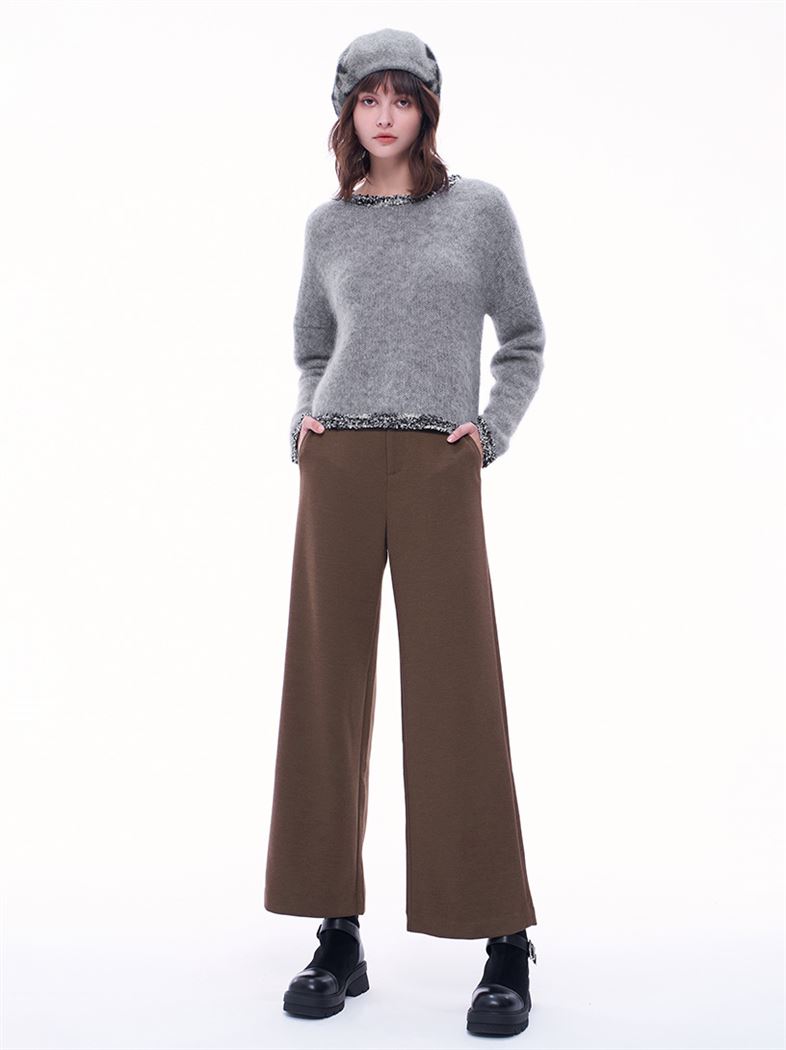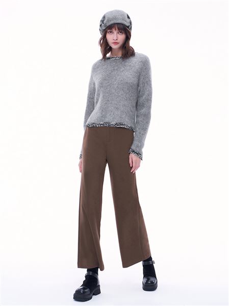推薦同款深灰色穿搭 溫柔質感軟糯羊毛混紡寬褲-深灰 請點我