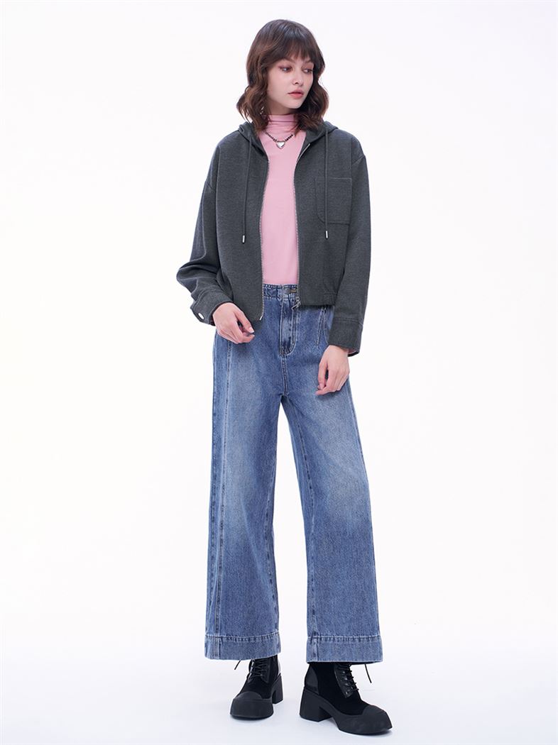 推薦穿搭 交叉縫線中高腰直筒牛仔寬褲 請點我
