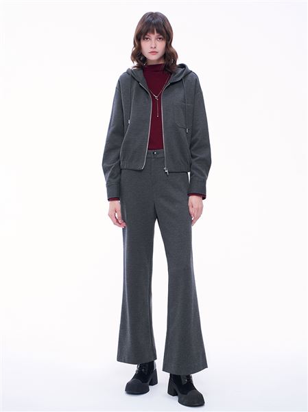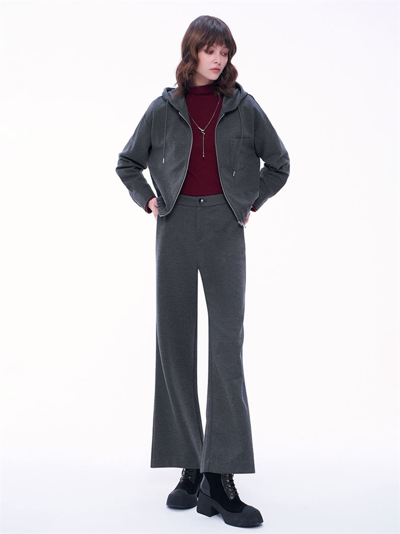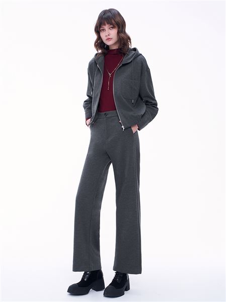 推薦成套穿搭 溫柔質感軟糯羊毛混紡寬褲-深灰 請點我