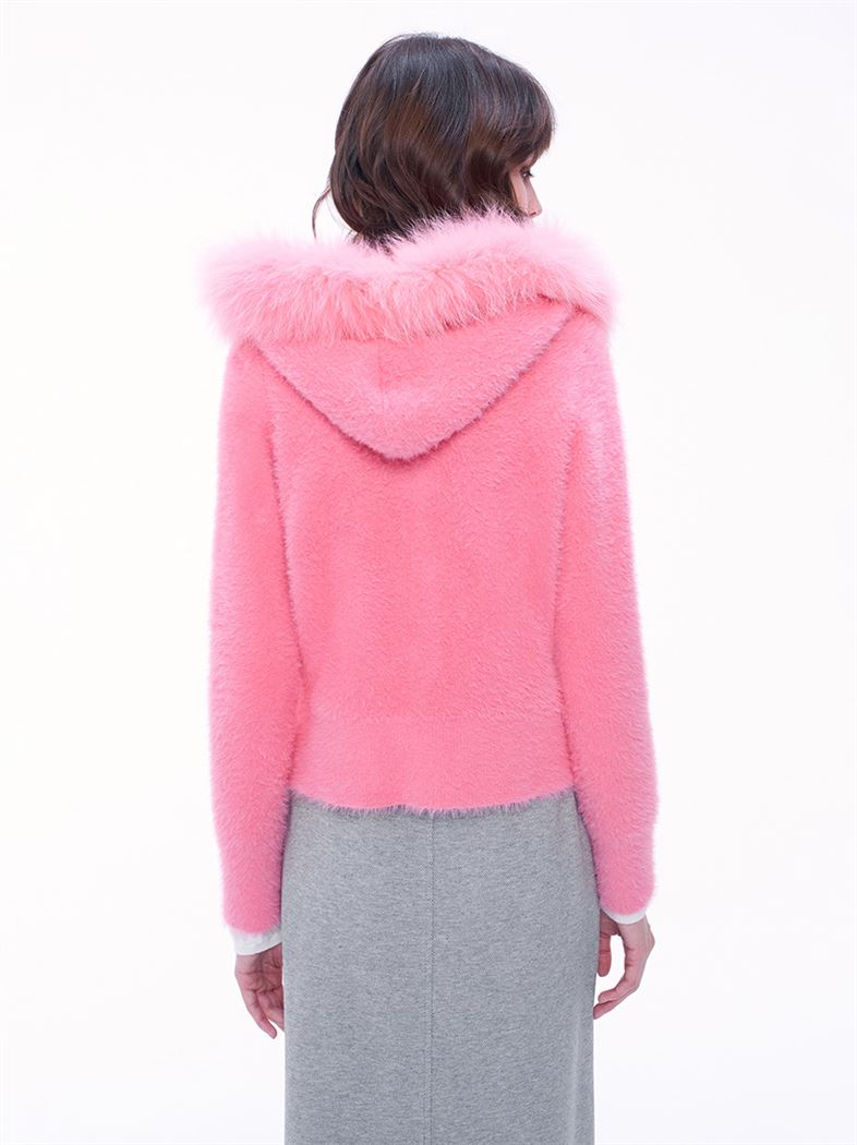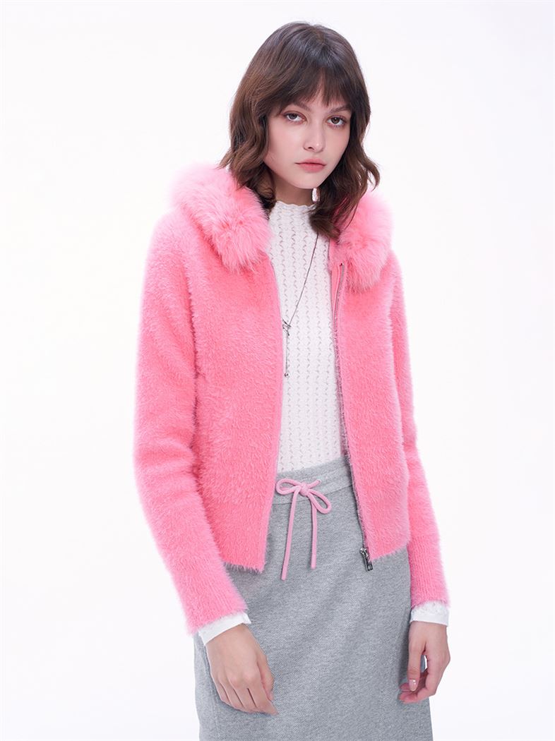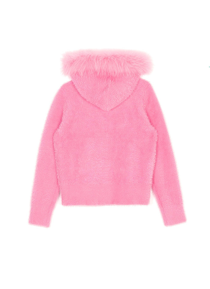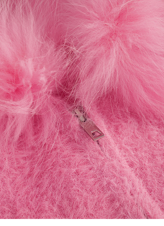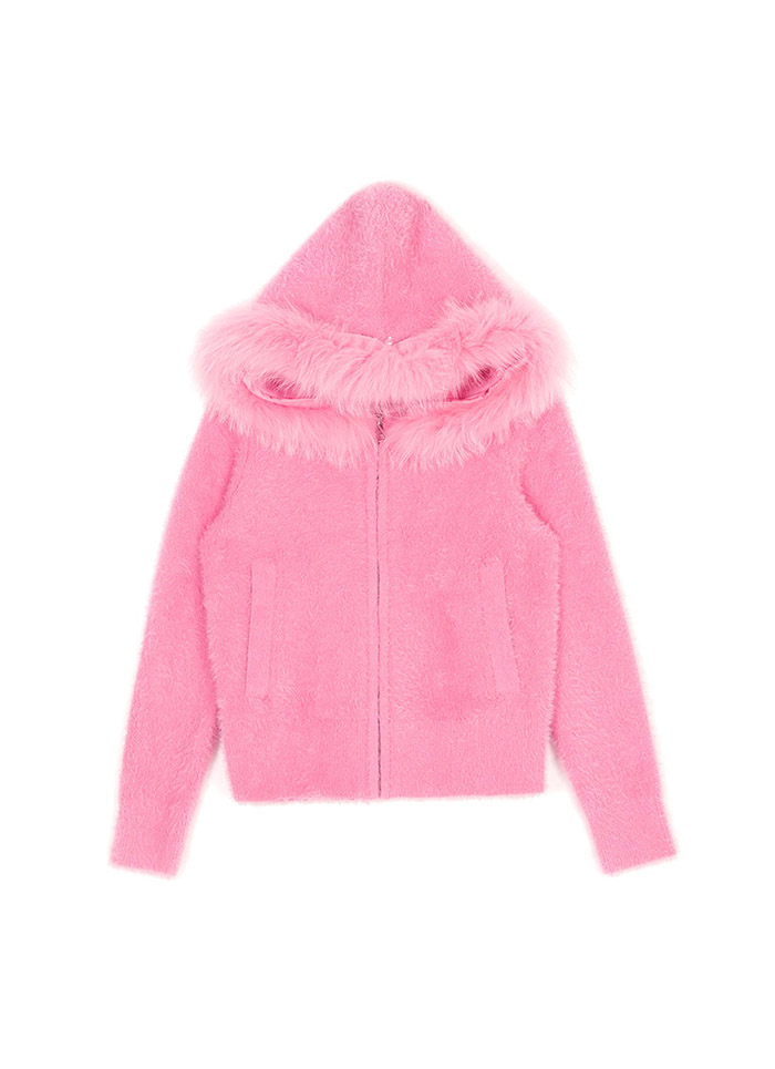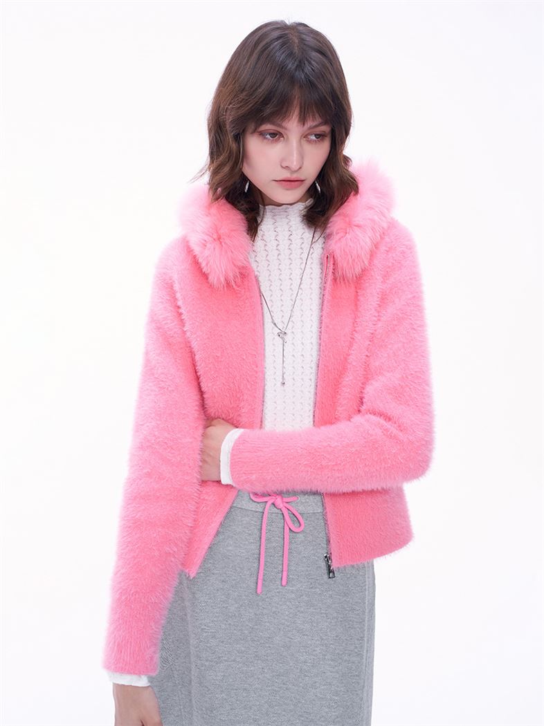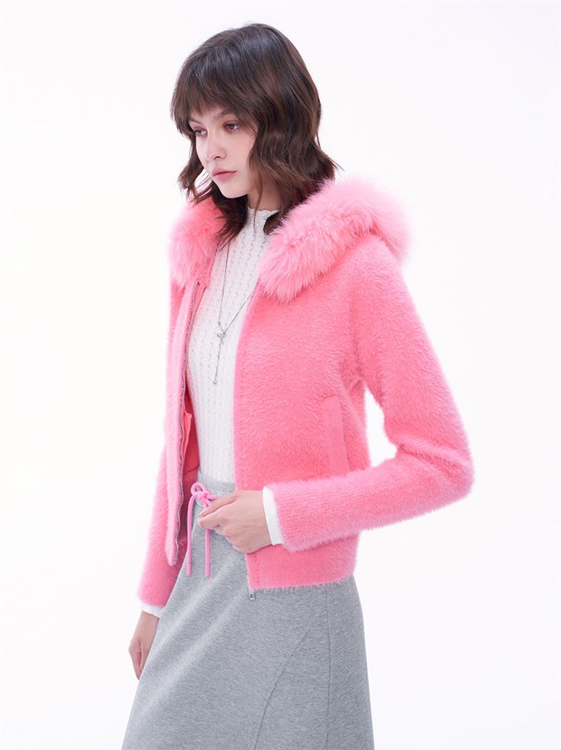 推薦同款白色穿搭 俏麗狐狸毛圈仿貂毛連帽外套-白 請點我