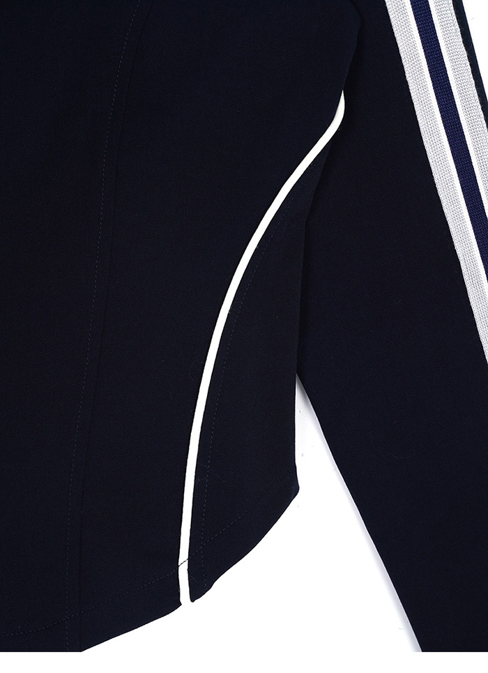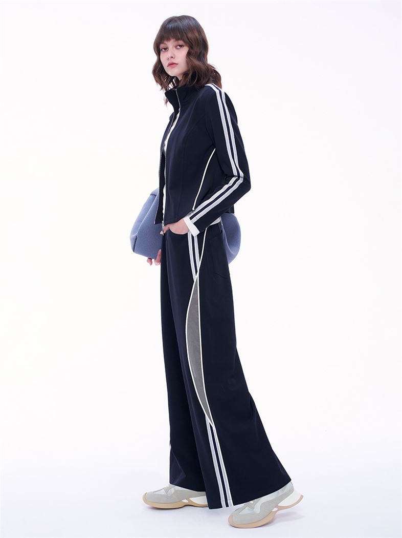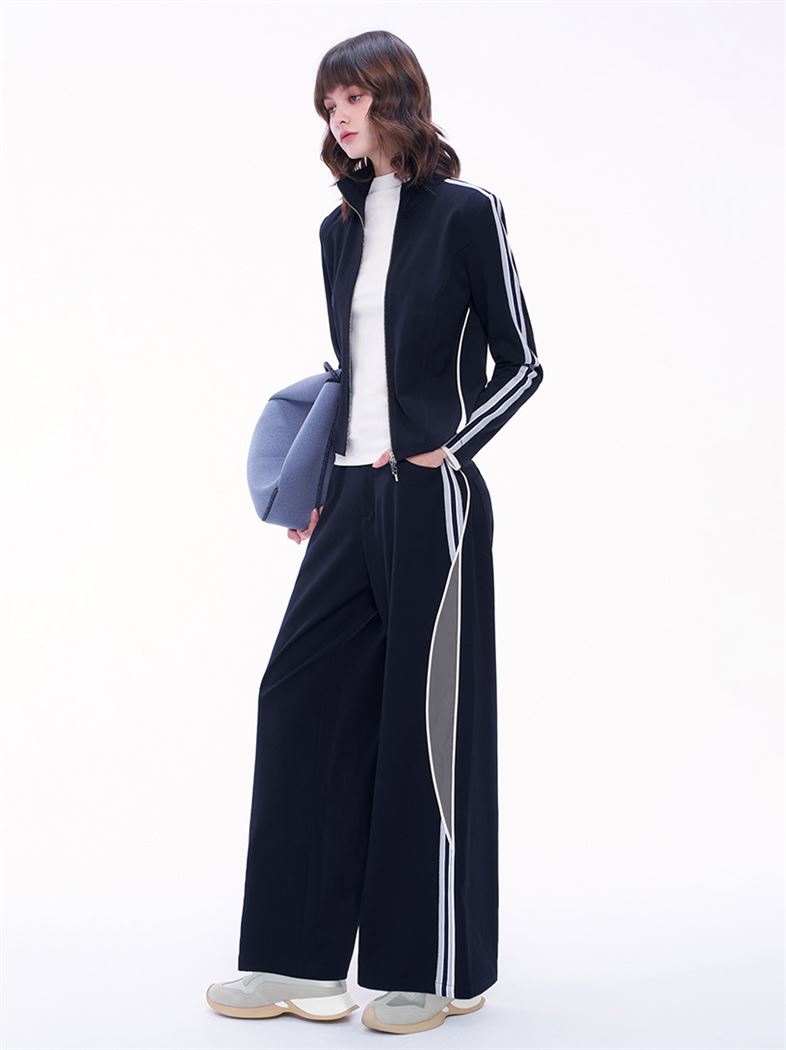 推薦成套穿搭 復古運動風撞色條紋顯瘦寬褲 請點我