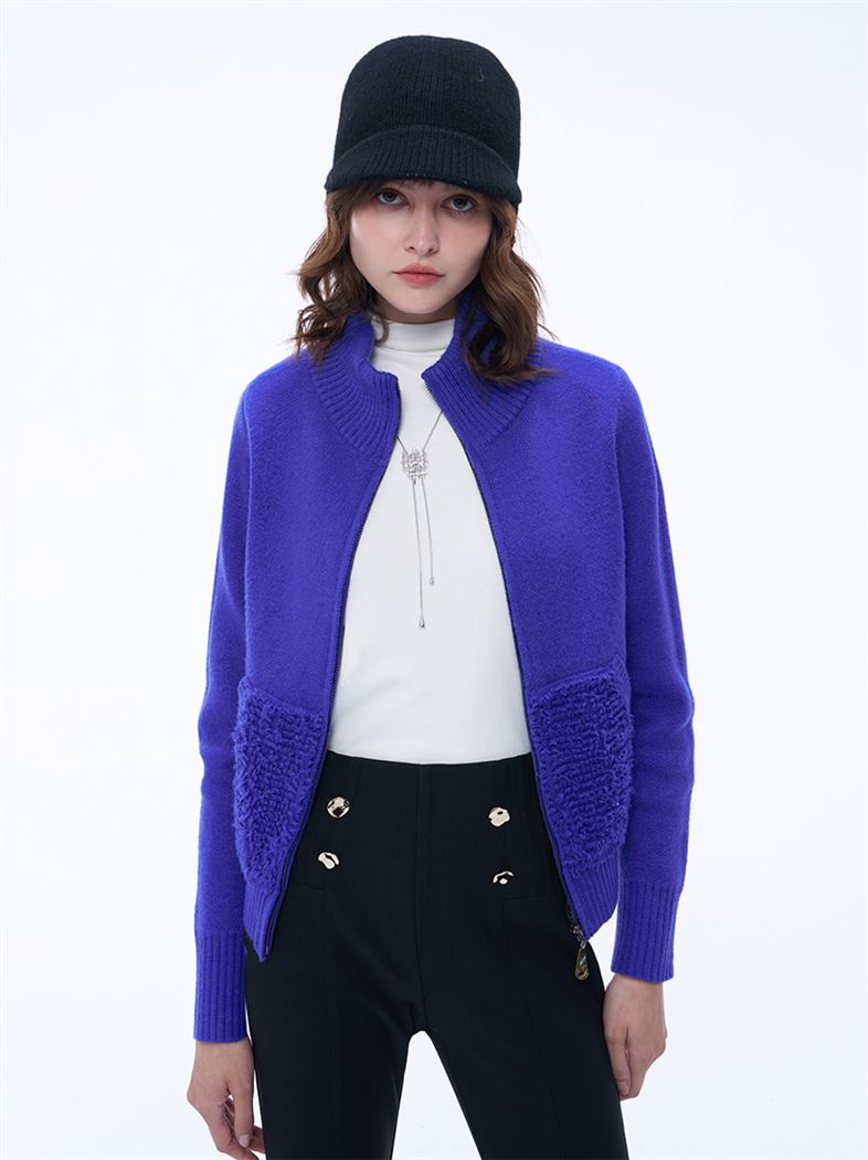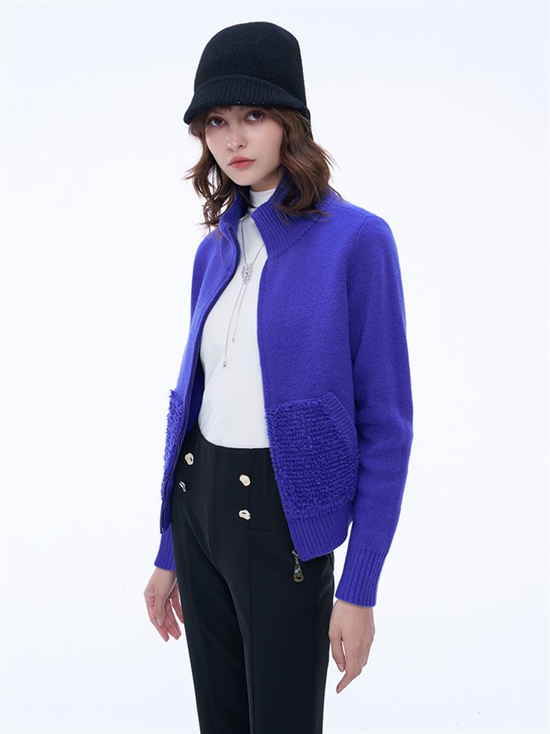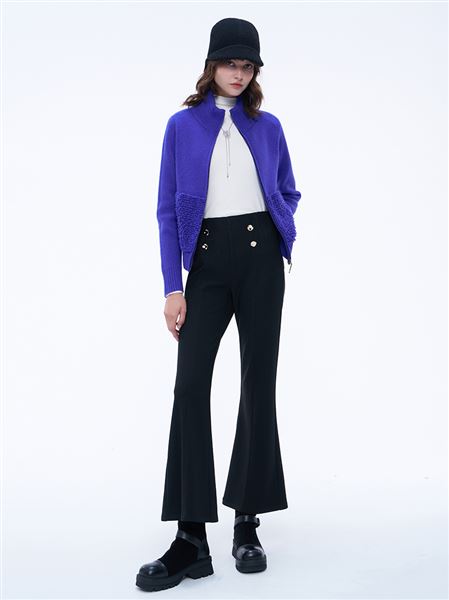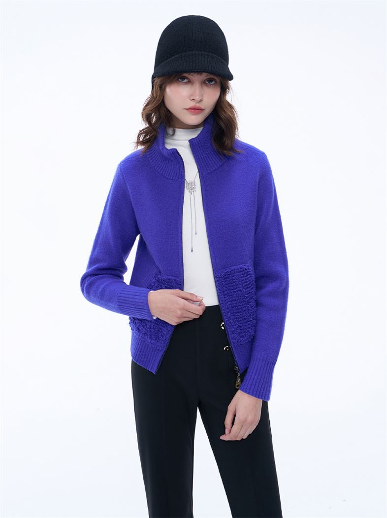 推薦同款米白色穿搭 時髦高領仿羊羔毛針織外套--米白 請點我