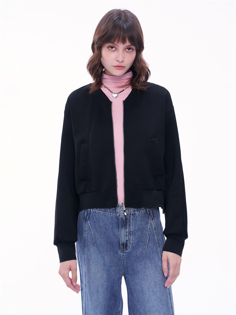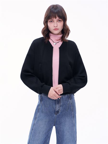推薦同款暗紅色穿搭 潮流氣球感短版太空棉教練外套-暗紅 請點我