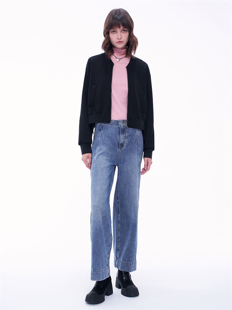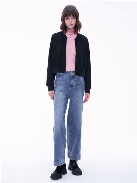 推薦穿搭 交叉縫線中高腰直筒牛仔寬褲 請點我