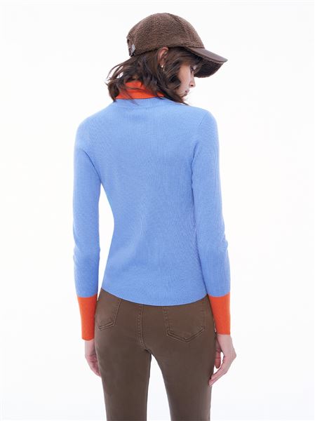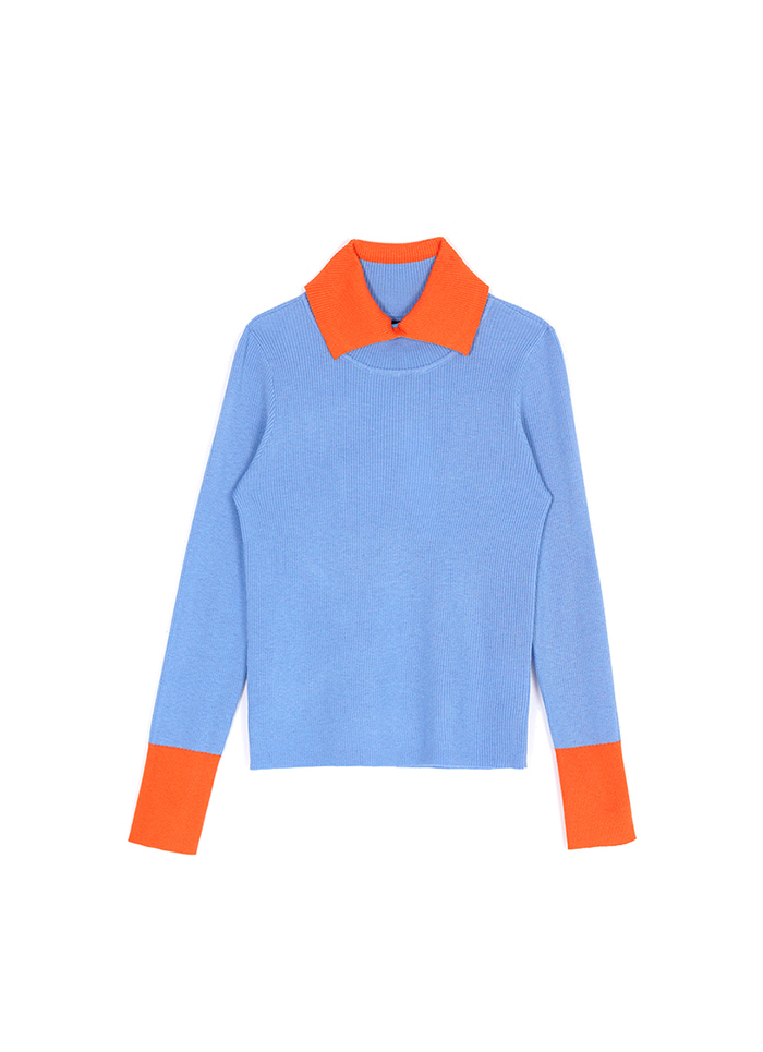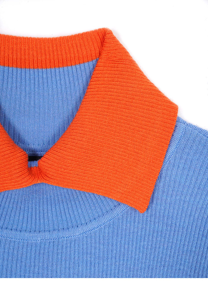 推薦同款咖啡色穿搭 色彩碰撞襯衫立領羊毛針織上衣-咖啡 請點我