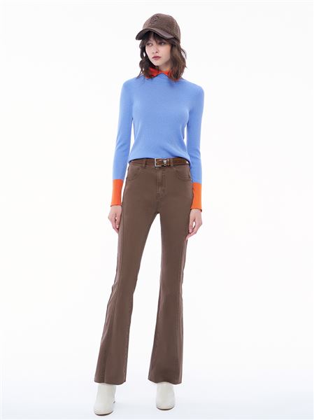 推薦穿搭 人氣追加 | 巧克力牛奶抽鬚不收邊內磨毛小喇叭褲 請點我