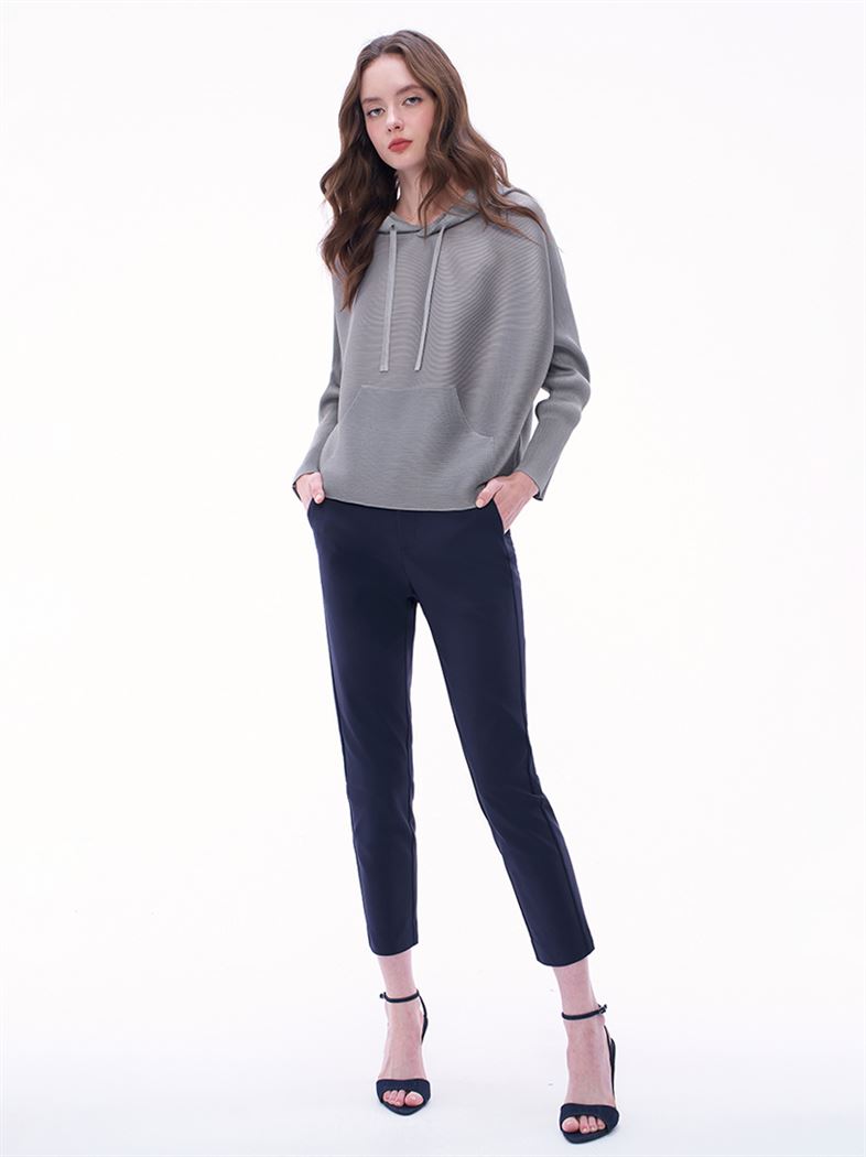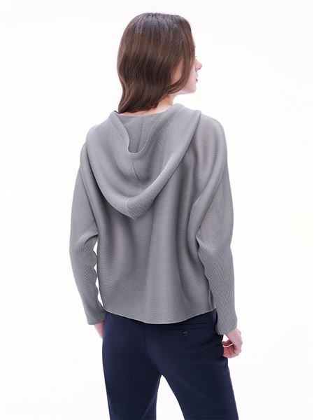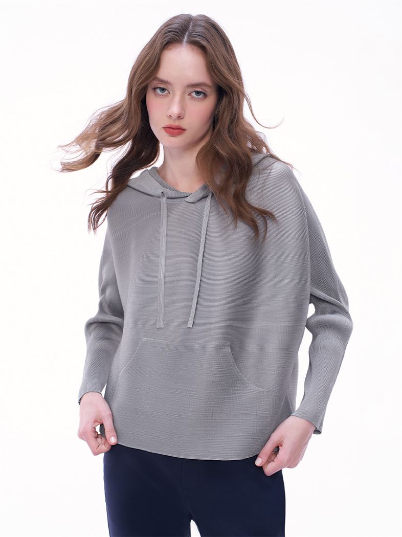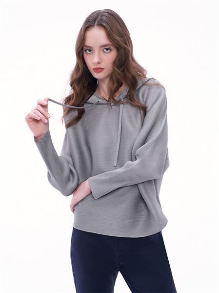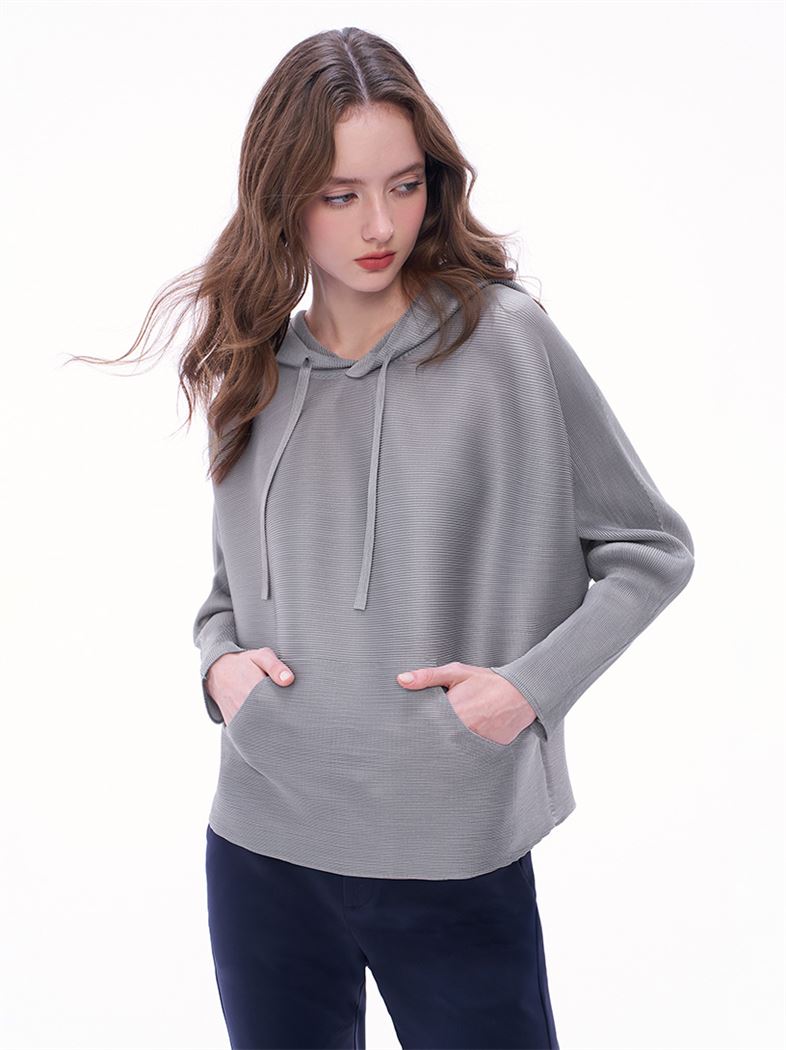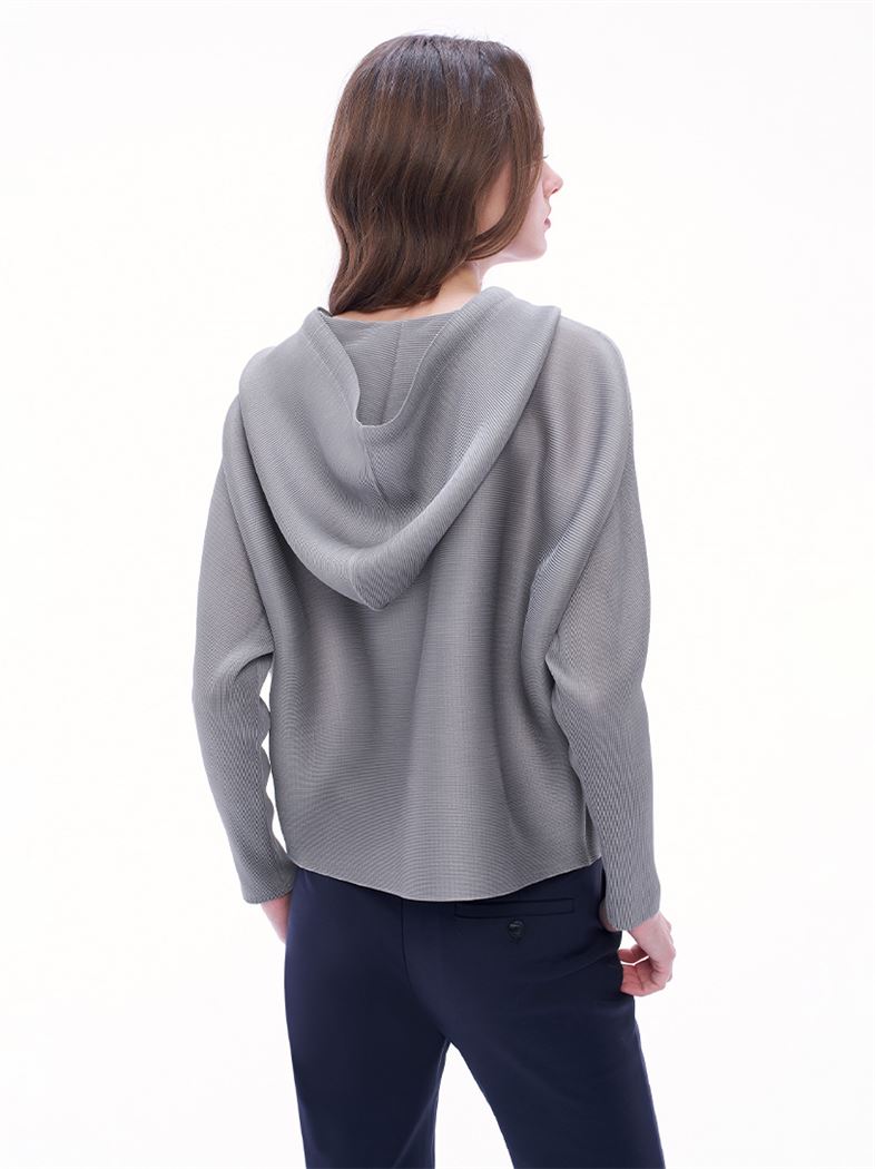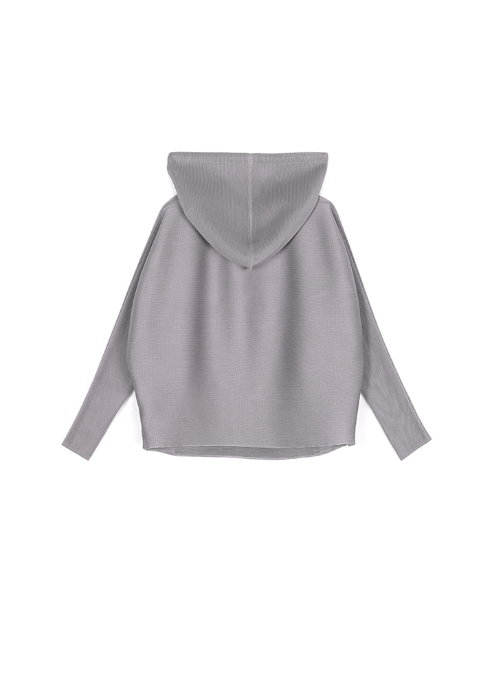 特殊剪裁細壓褶飛鼠袖帽T-灰