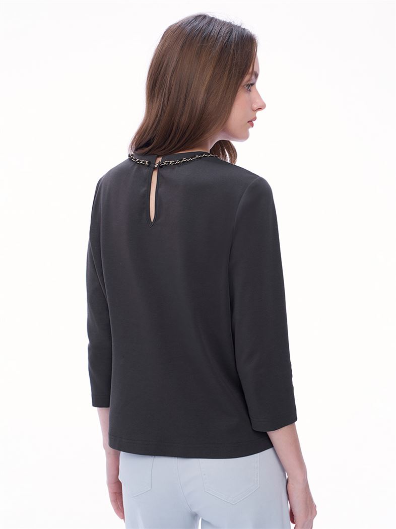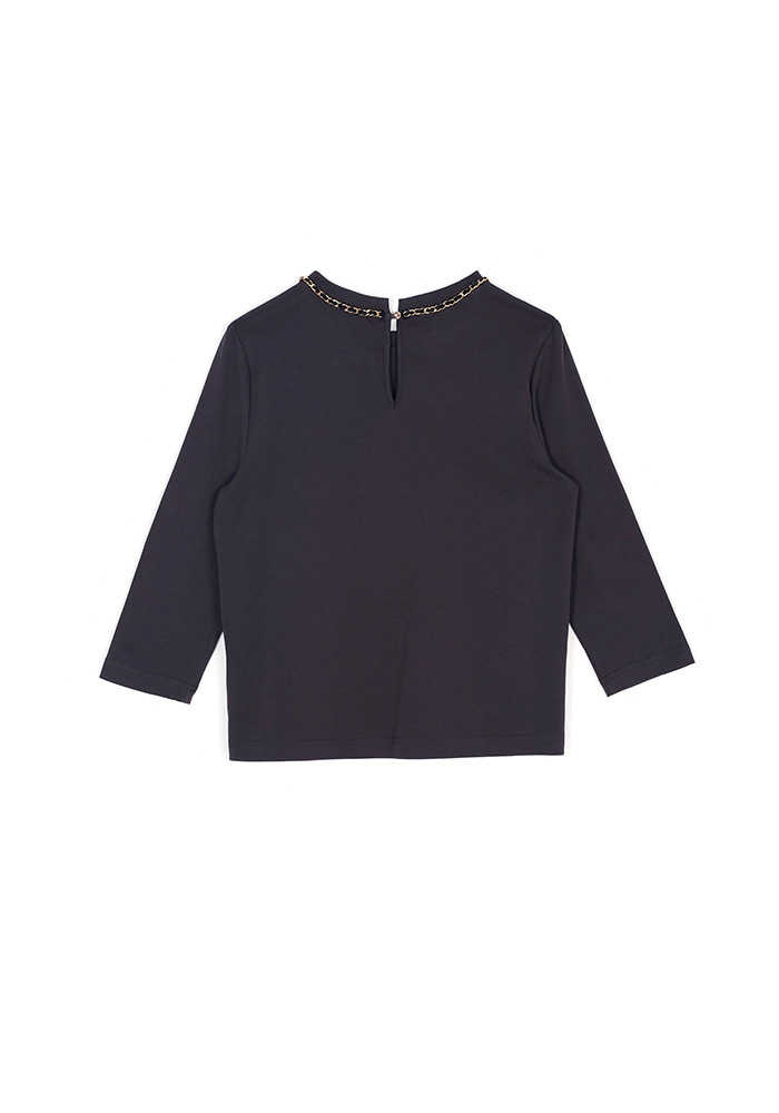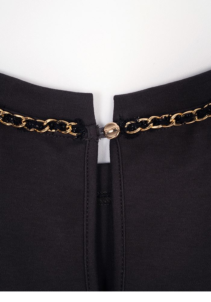 - 撞色小香金鍊圓領後開釦設計,精美方便穿脫