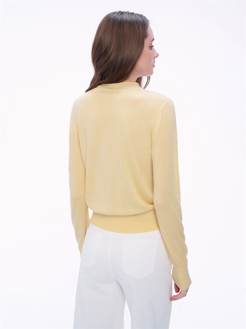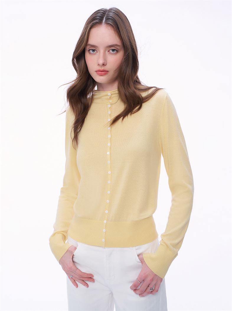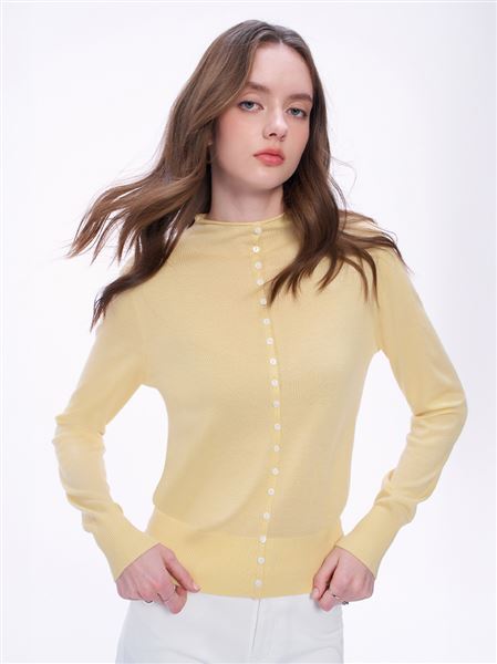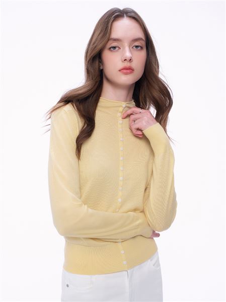 M+ | 簡約美學羊絨小立領針織上衣-黃