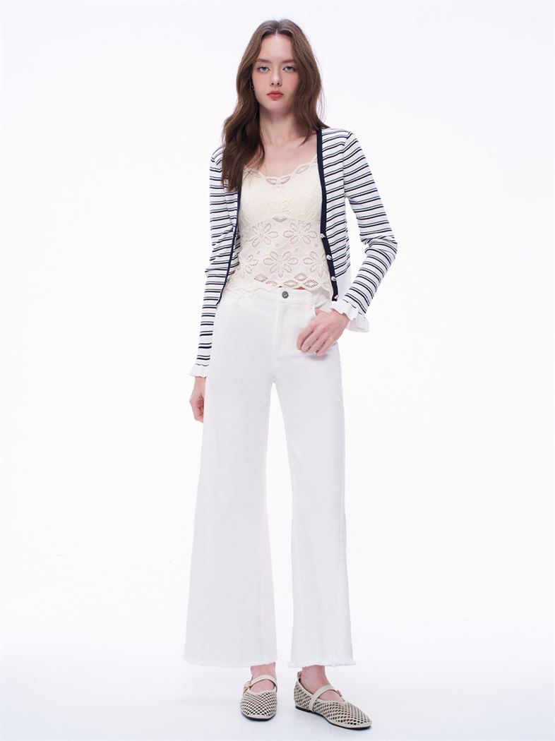 推薦穿搭 四季皆宜毛邊直筒牛仔寬褲-白 請點我
