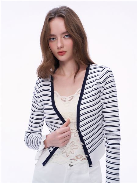 推薦成套穿搭 俐落海軍藍條紋針織洋裝 請點我