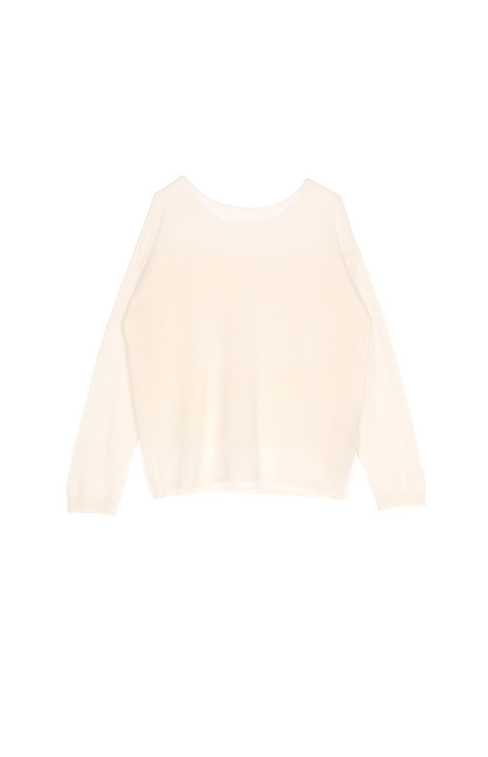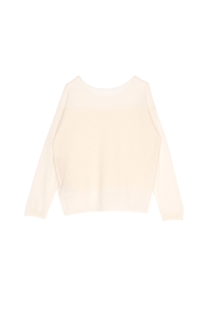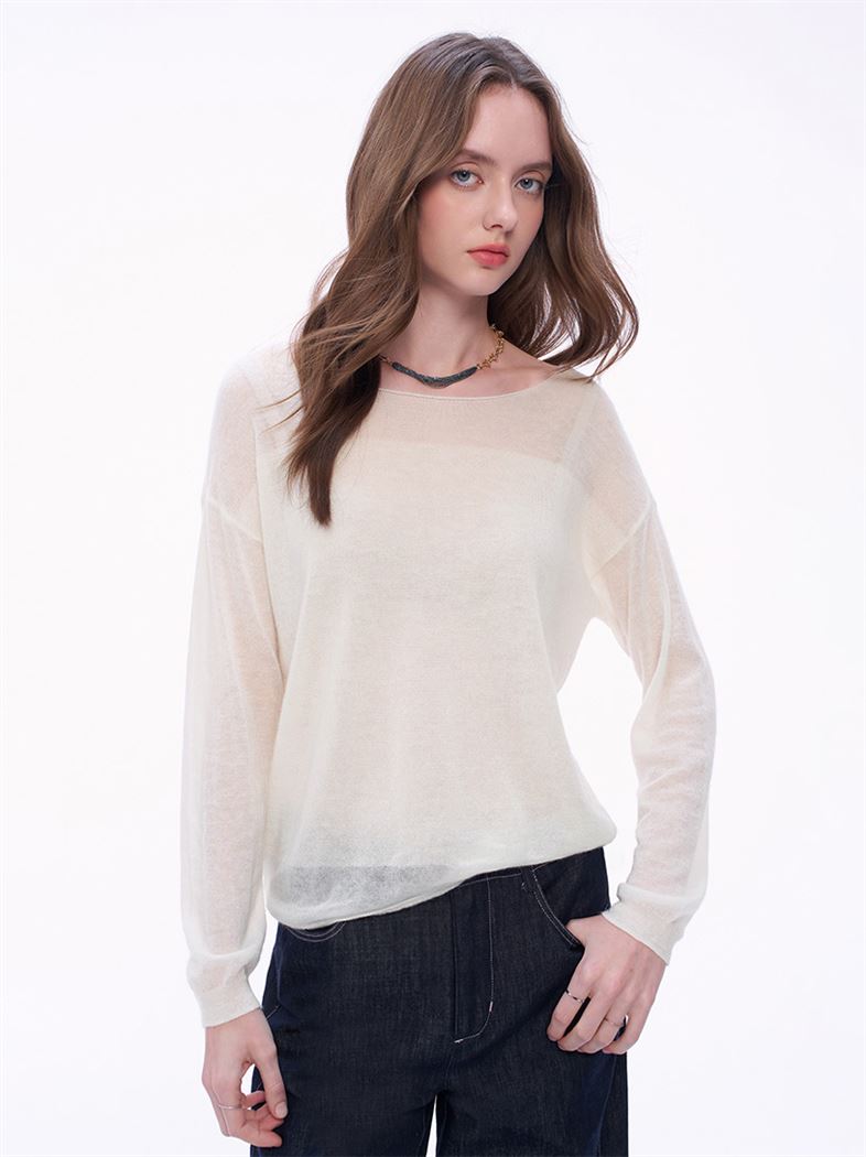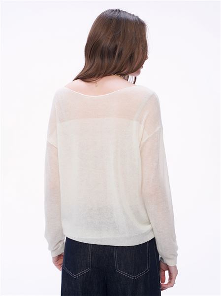 M+ | 慵懶透膚暖意羊毛針織上衣-米白