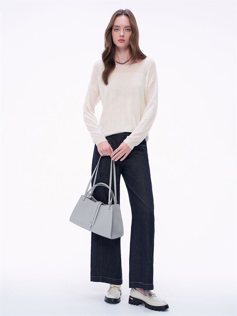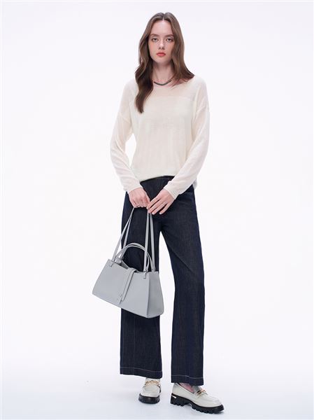 - 圓領寬鬆落肩版型,展現慵懶氣息