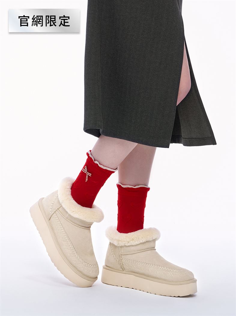 推薦配件 100%暖芯羊毛厚底刺繡牛皮短靴 請點我