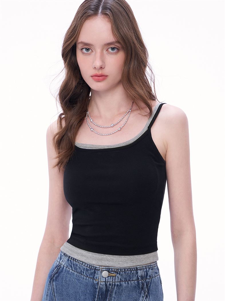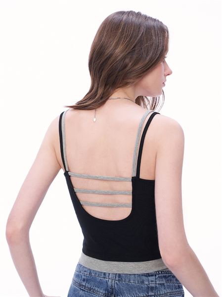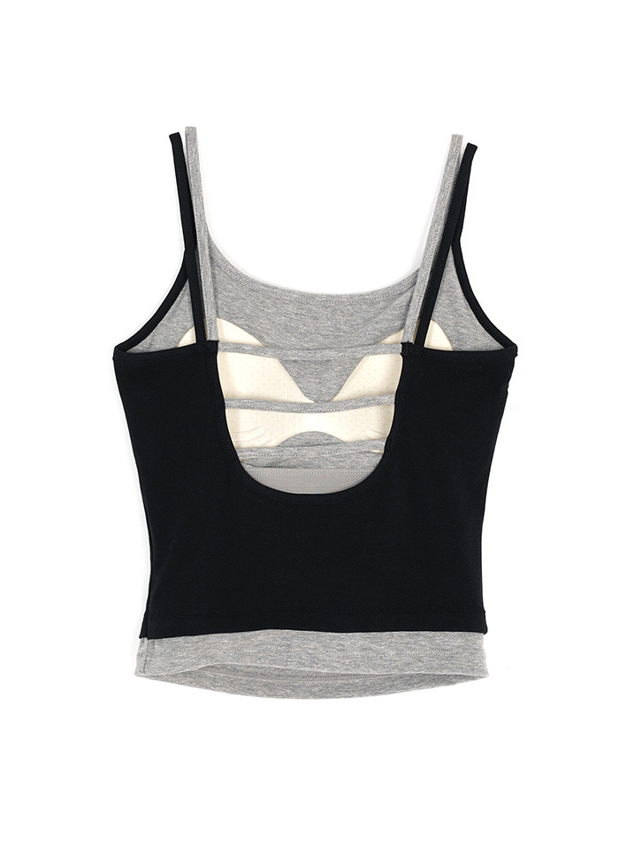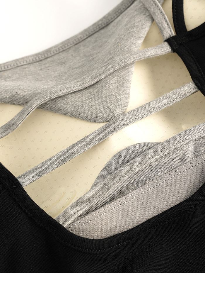 推薦同款暗紅色穿搭 百搭撞色美背棉感假兩件Bratop-紅 請點我