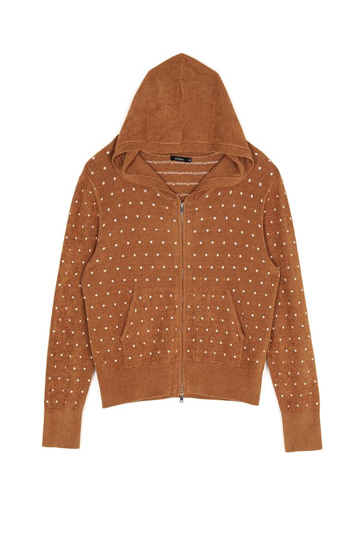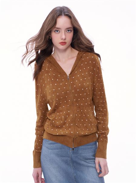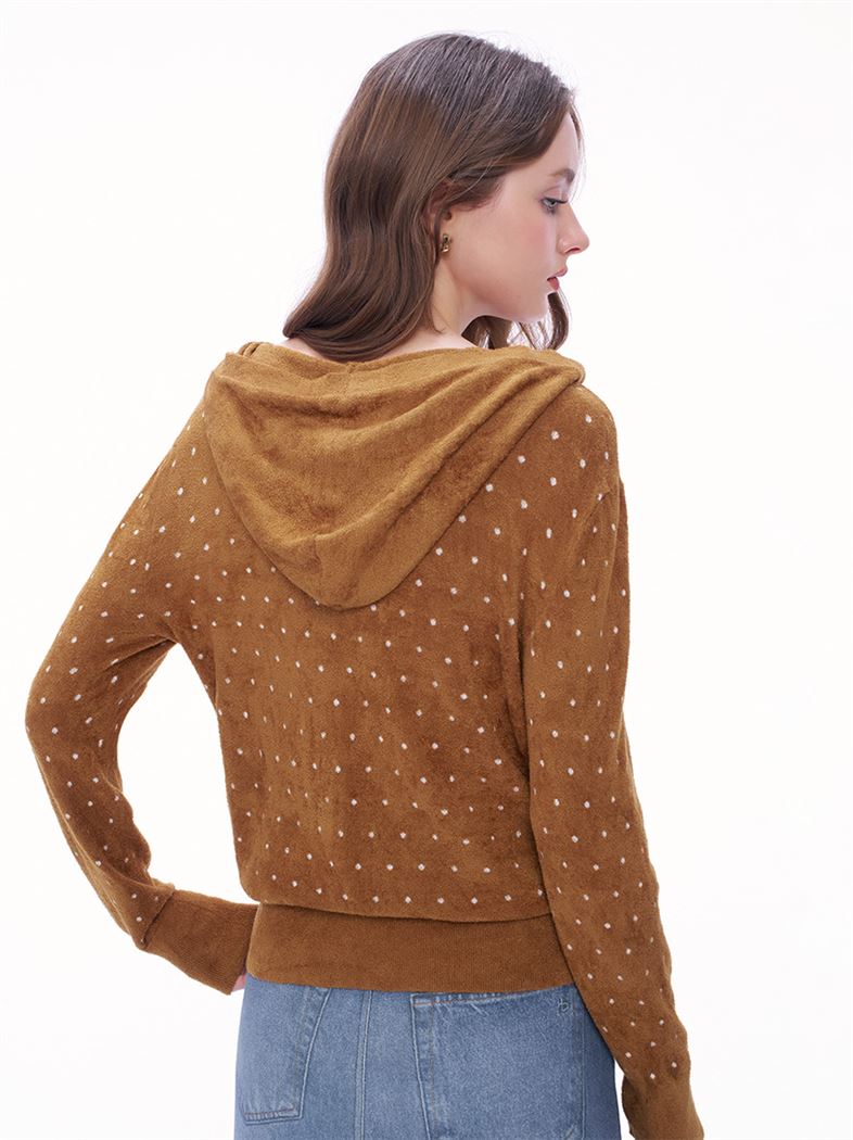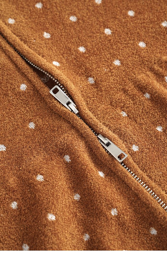 柔軟波卡圓點搖粒絨連帽外套-咖啡