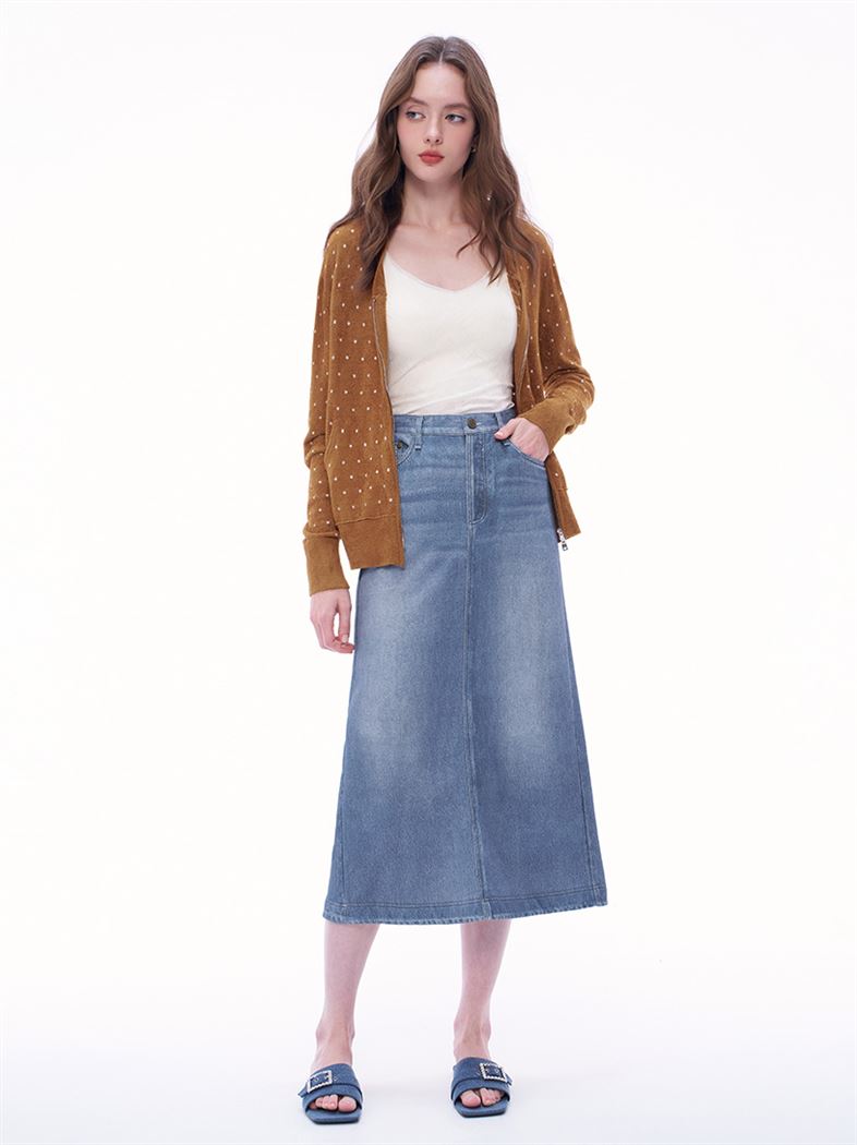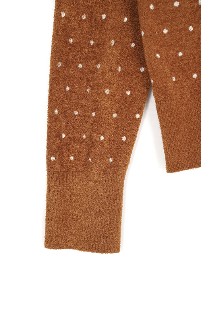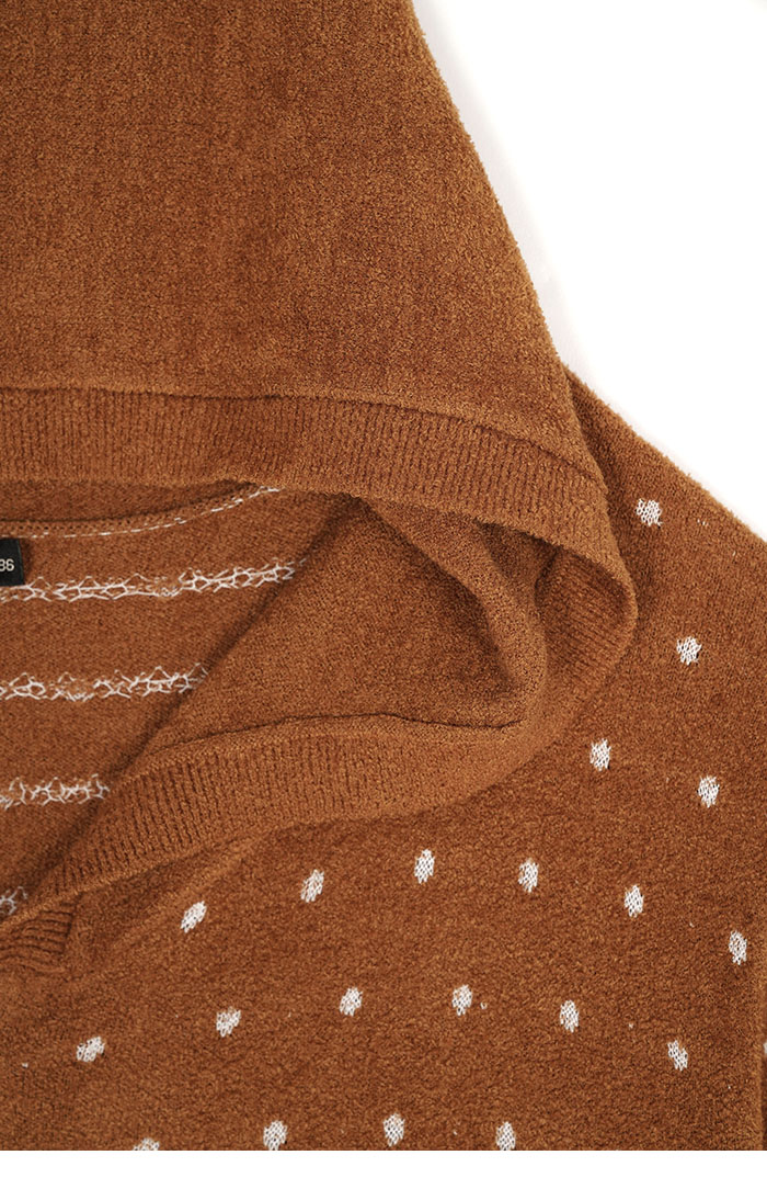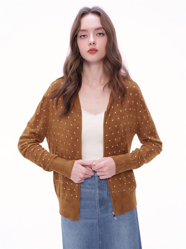 - 滿版異材質撞色編織波卡圓點,增添服飾層次