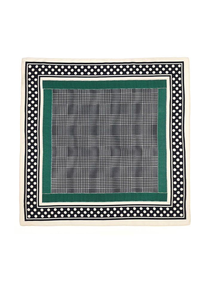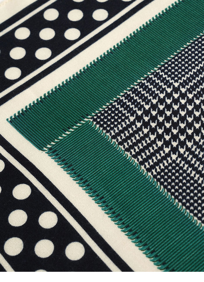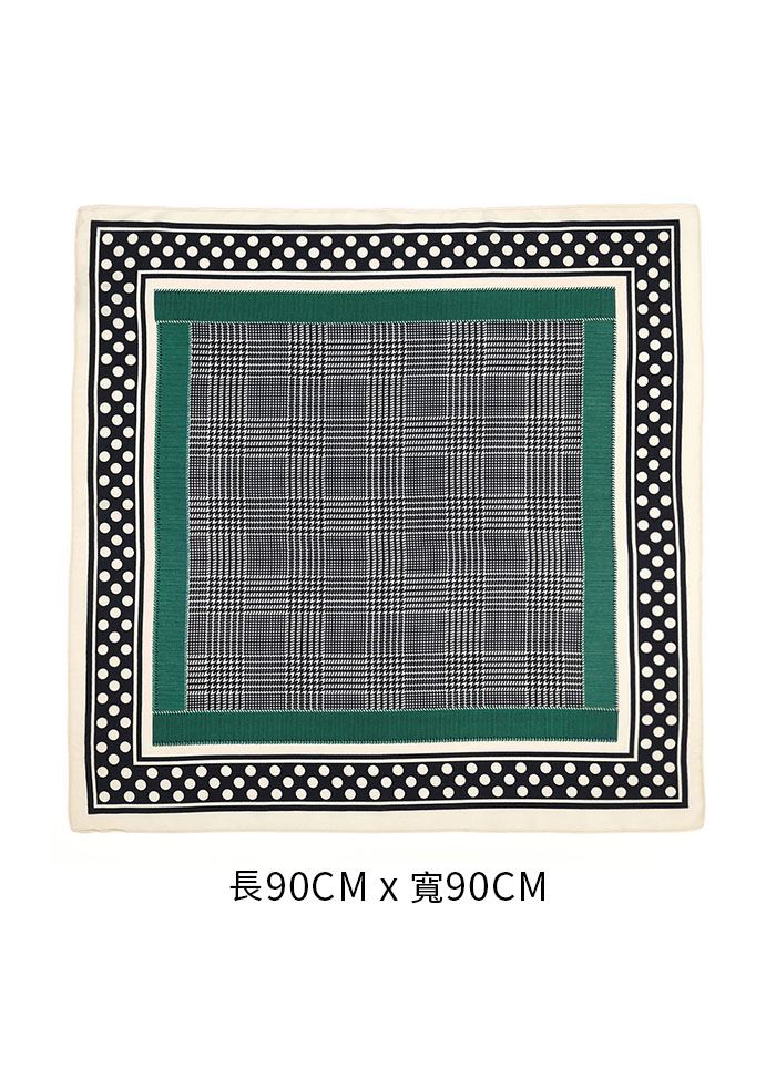 推薦同款橘色穿搭 復古綠調波點幾何撞色絲巾-橘 請點我