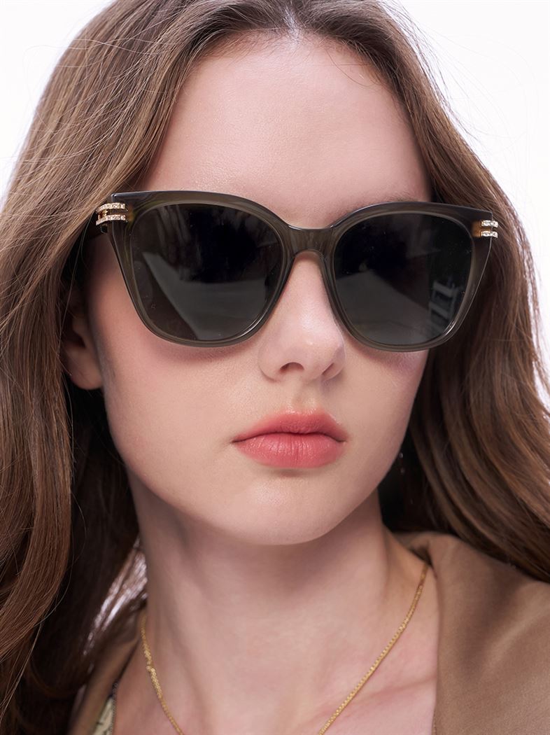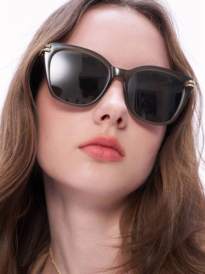 推薦同款黑色穿搭 摩登氣場雙排鑽飾貓眼墨鏡-黑 請點我