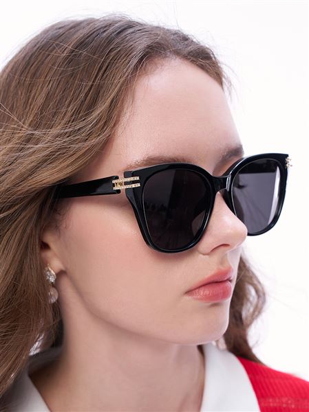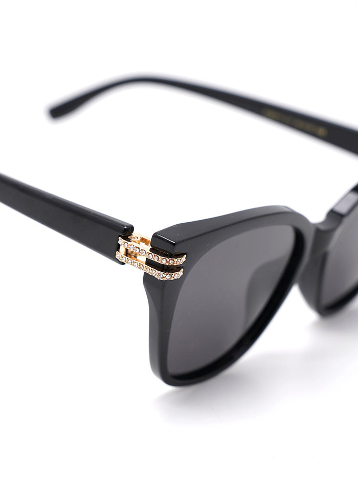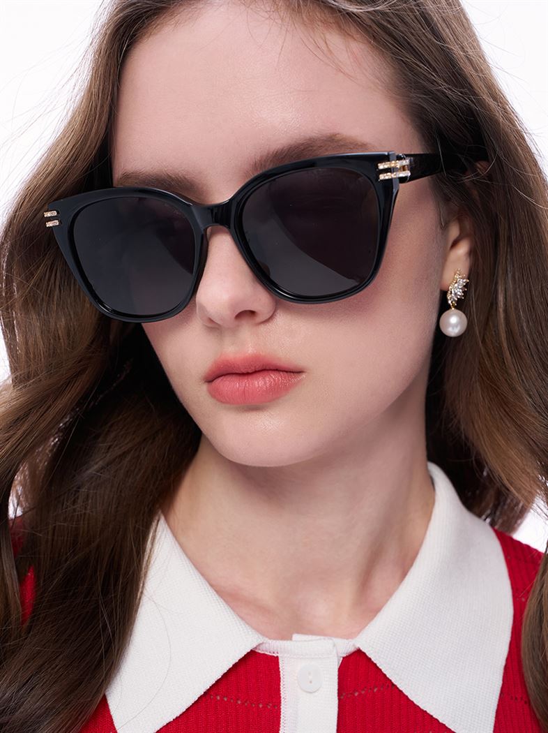 推薦同款咖啡色穿搭 摩登氣場雙排鑽飾貓眼墨鏡-咖啡 請點我