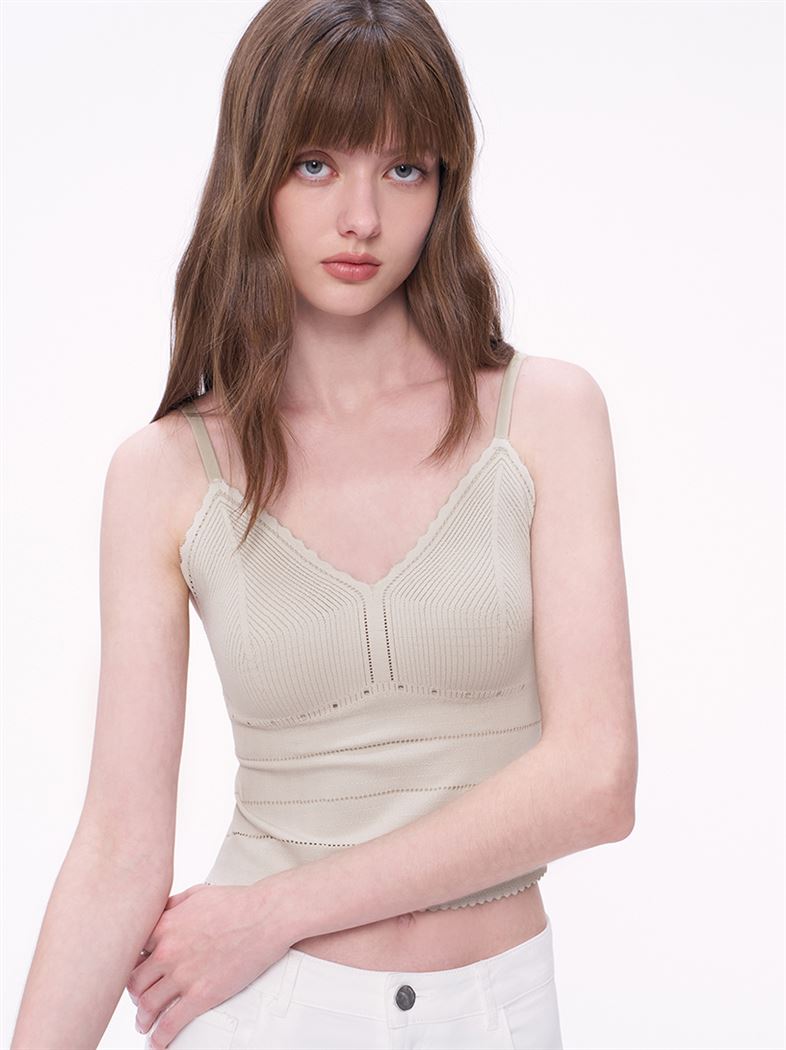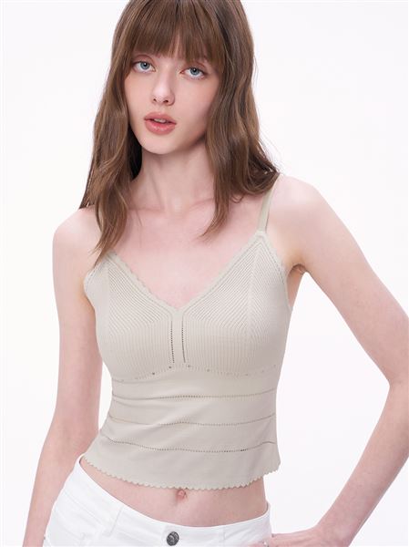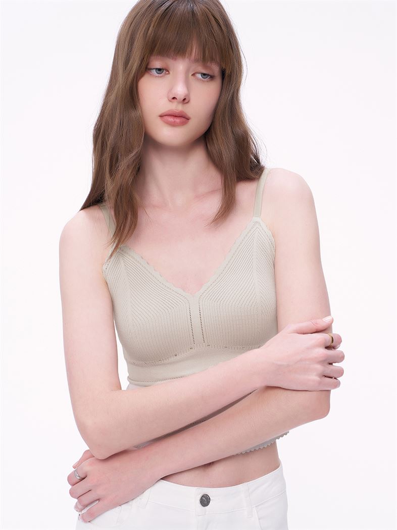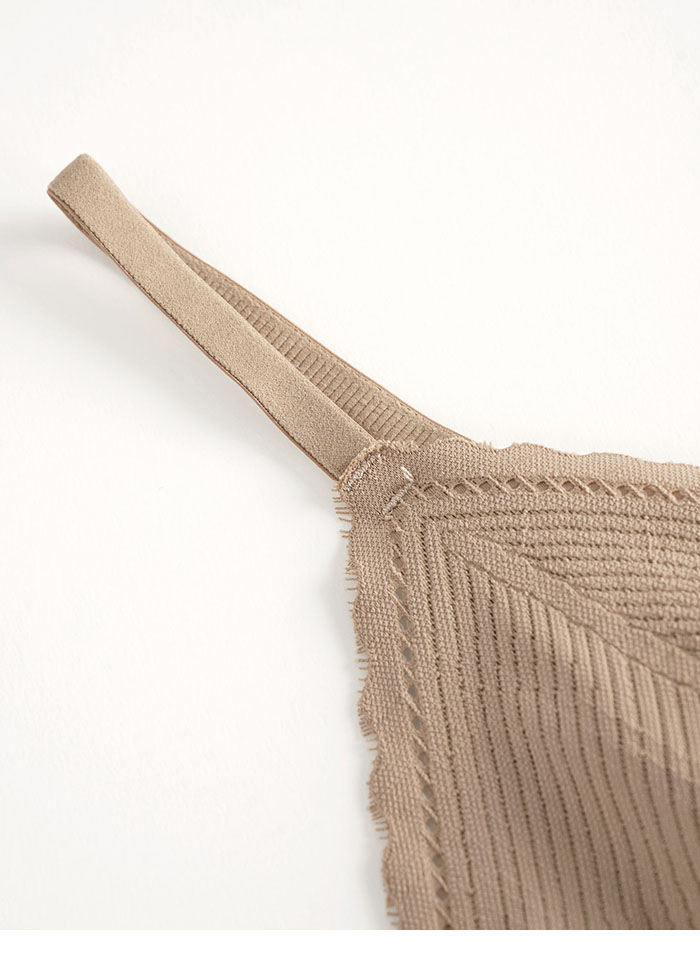 推薦同款卡其色穿搭 法式柔線波浪鏤空織紋Bra Top-卡其 請點我