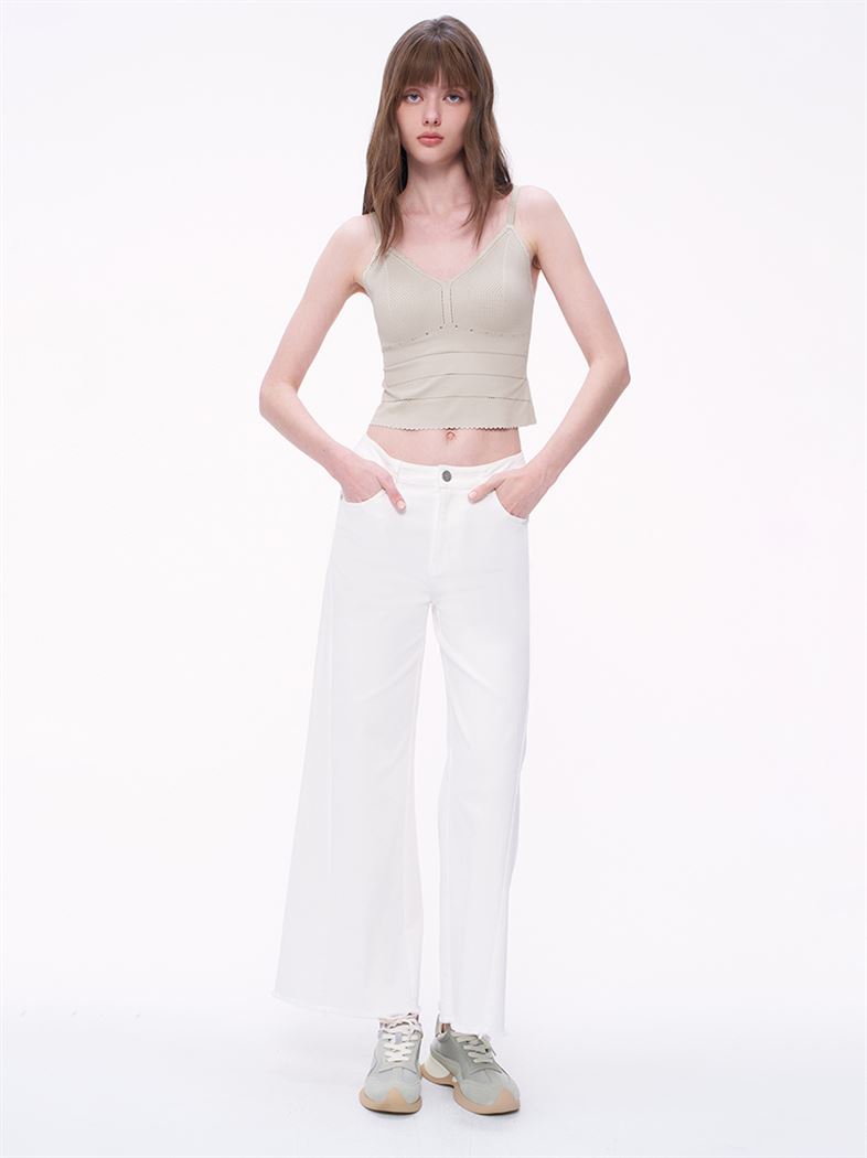 推薦穿搭 四季皆宜毛邊直筒牛仔寬褲-白 請點我