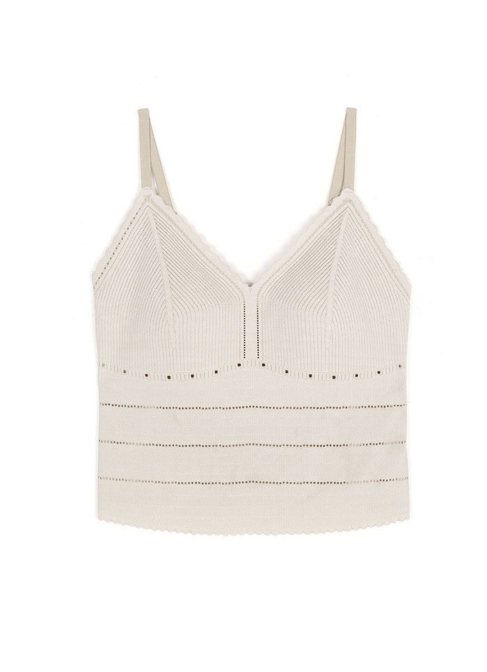 推薦同款白色穿搭 法式柔線波浪鏤空織紋Bra Top-白 請點我