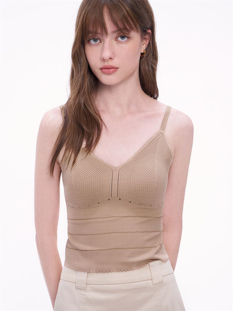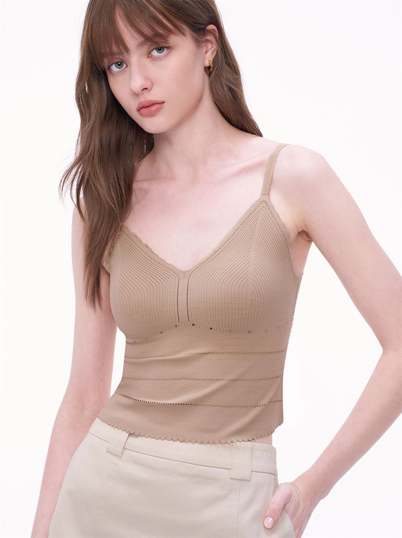 推薦同款杏色穿搭 法式柔線波浪鏤空織紋Bra Top-杏 請點我